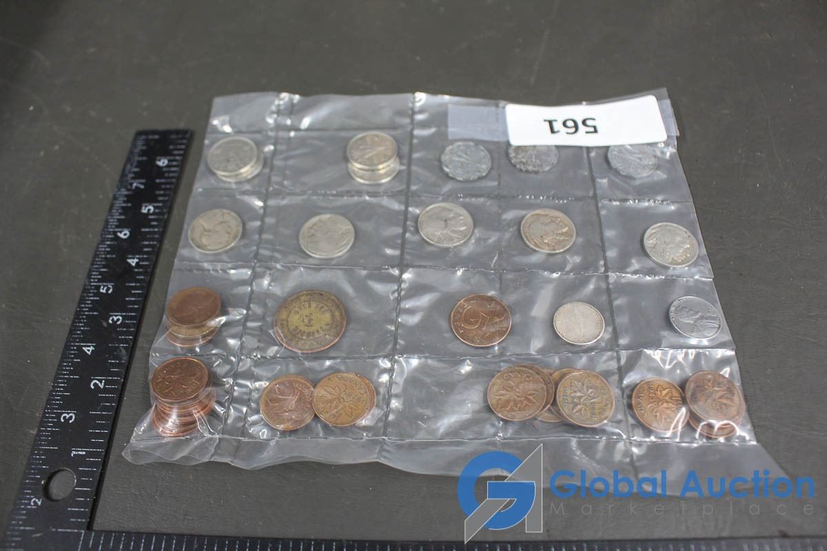 Old US Pennies, Nickles and Canadian Pennies, Nickles, Dimes, and Misc Other Coins and Tokens