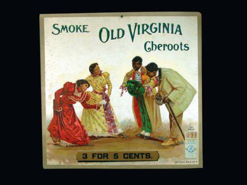 Old Virginia Cheroots Cardboard Sign, entitled the Cake Walk #4, copyright 1899. Excellent condition. 17 1/2 X 17 inches.