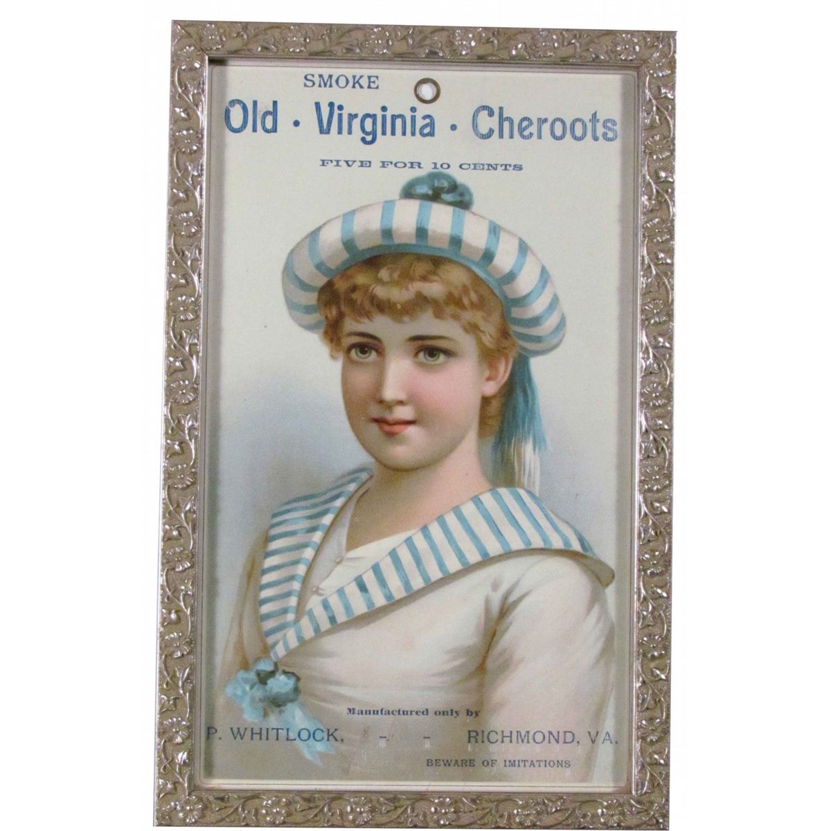 Old Virginia Cheroots Cardboard String Hanger. Framed Under Glass. Excellent condition. 6 /2 X 10 1/2 inches.