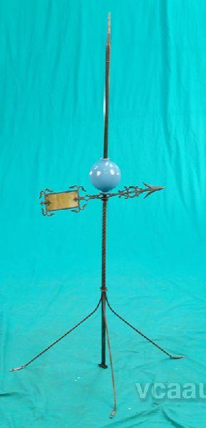 Old Weather Vane Lighting Rod w/ Arrow & Blue Glass Globe - 53" tall