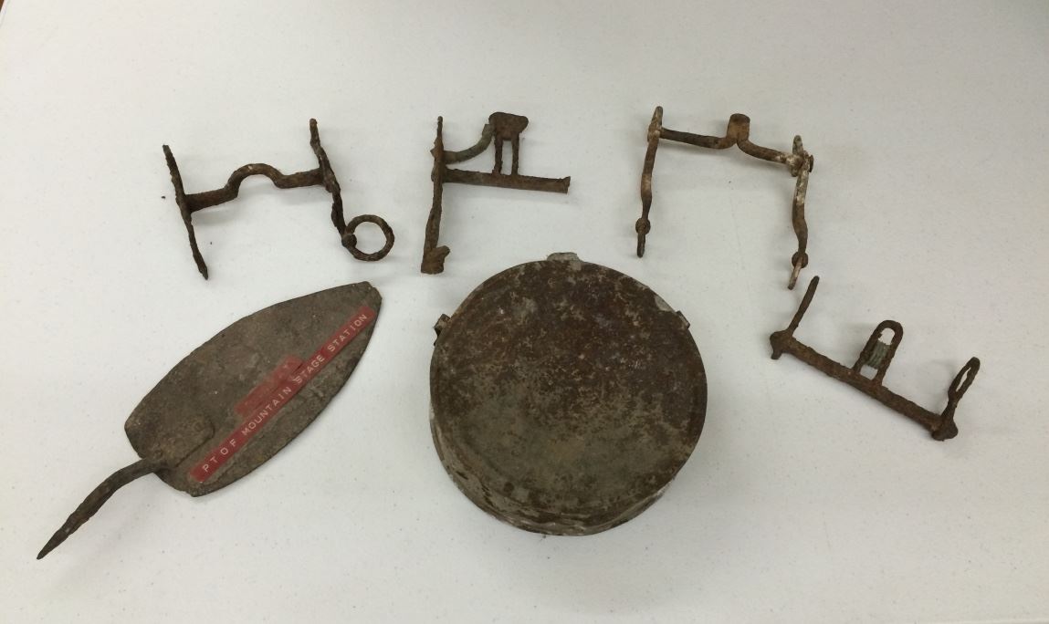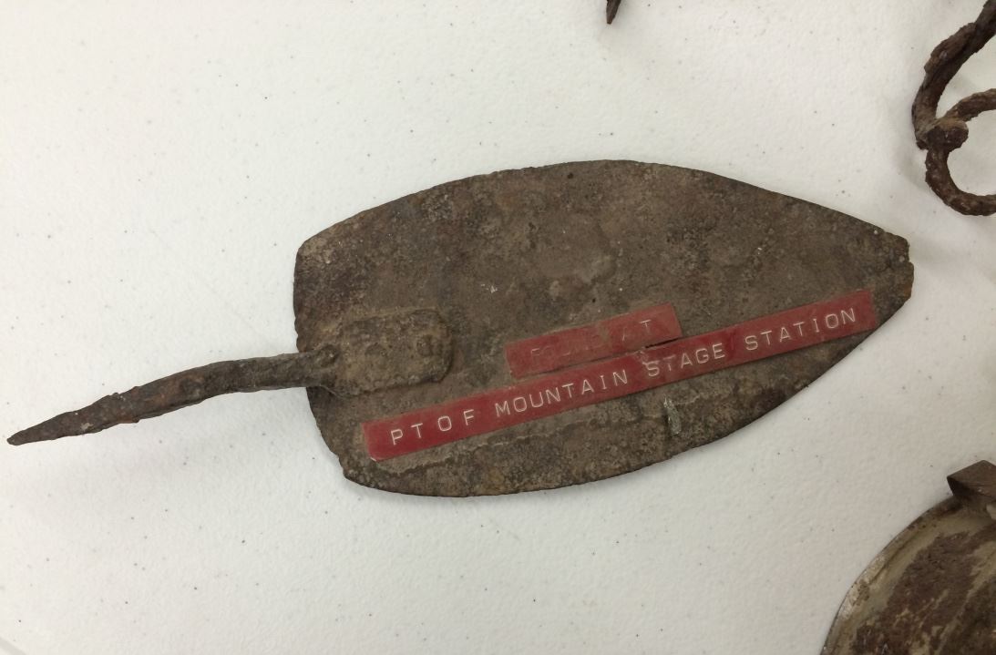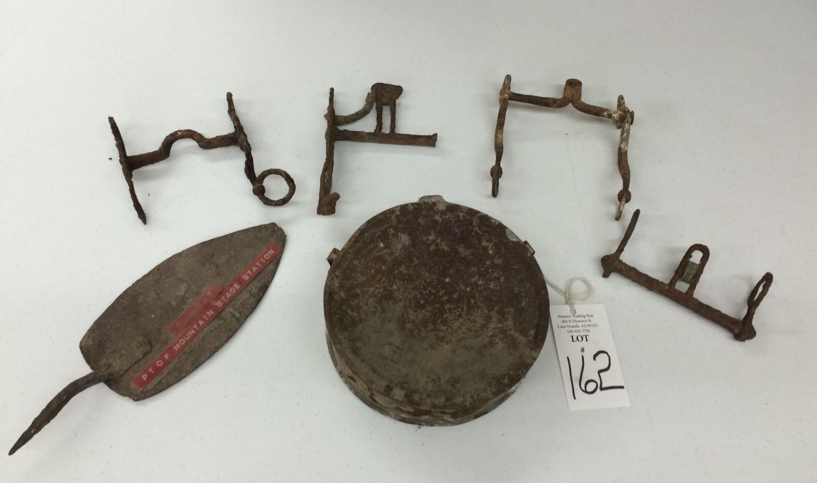 These items came from the old Frontier Relics Museum at Dos Cabezas, AZ. They were in an area labeled “Found at Point of Mountain Stage Station”. Mr. Mickens, former owner and curator of the museum covered many old historical sites in the Southwest (with permission) and preserved the relics found in the museum. According to a quote from Will Barnes (scout for the Army during the Apache wars) he said “Point of Mountain stage station was operated by Thomas Steele starting in 1873 and it was abandoned in 1889.” Barnes also wrote that a stage he had been riding on was attacked by the Apache Victorio and his band just miles east of the station.