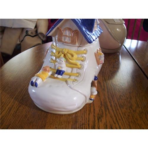 This is a 1986 Old Woman in The Shoe CJ by Fitz & Floyd.A darling CJ.Measures 10 1/2" tall and approx. 11" long.Kids just love this jar.