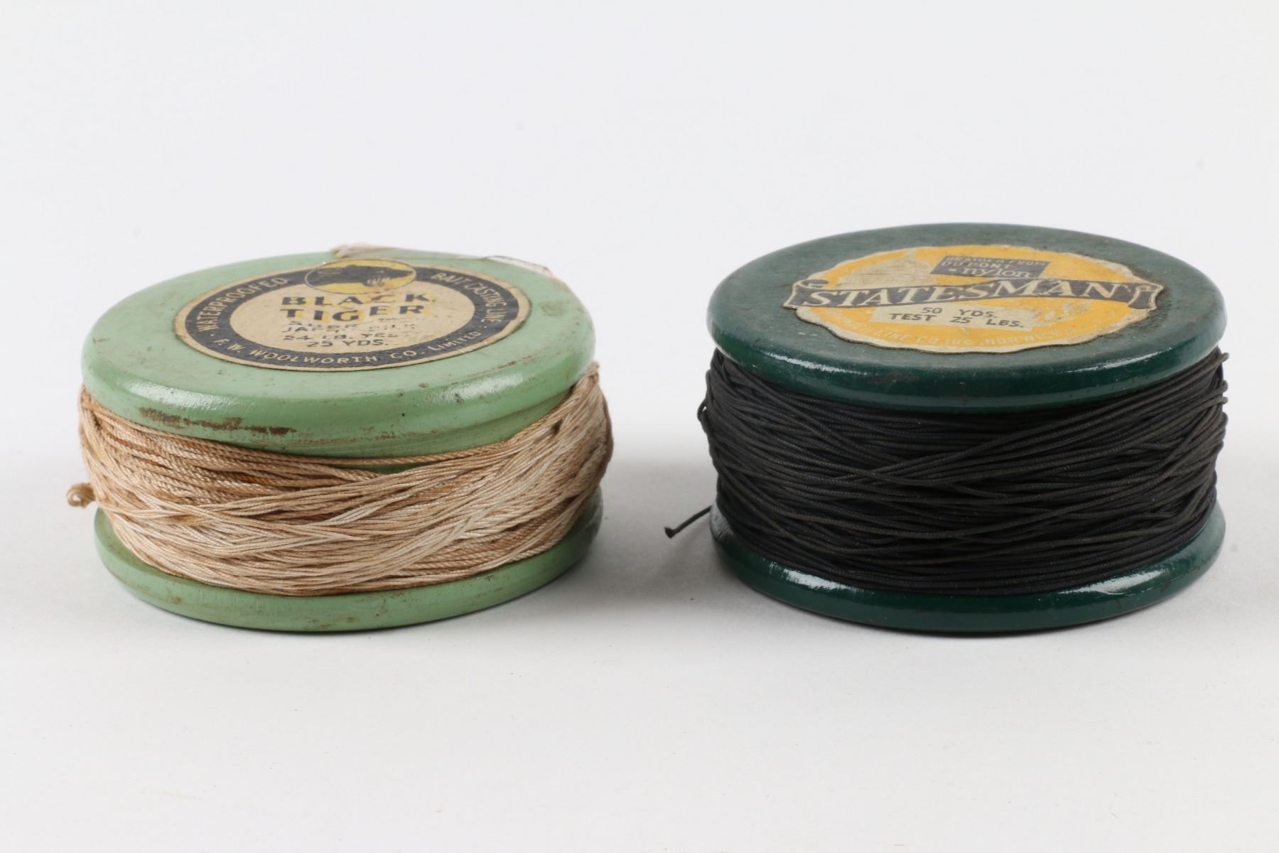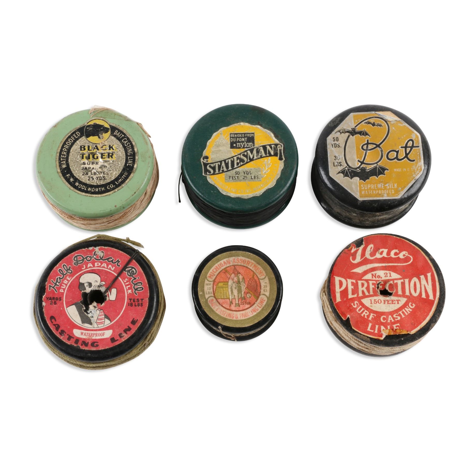 Black Tiger, Half Dollar Bill, Statesman, Michigan Assortment, Bat, Perfection, United States. Material: Wood. Quantity: 6. Grade: G+. 2" - 3" spools. Est. $75-100.