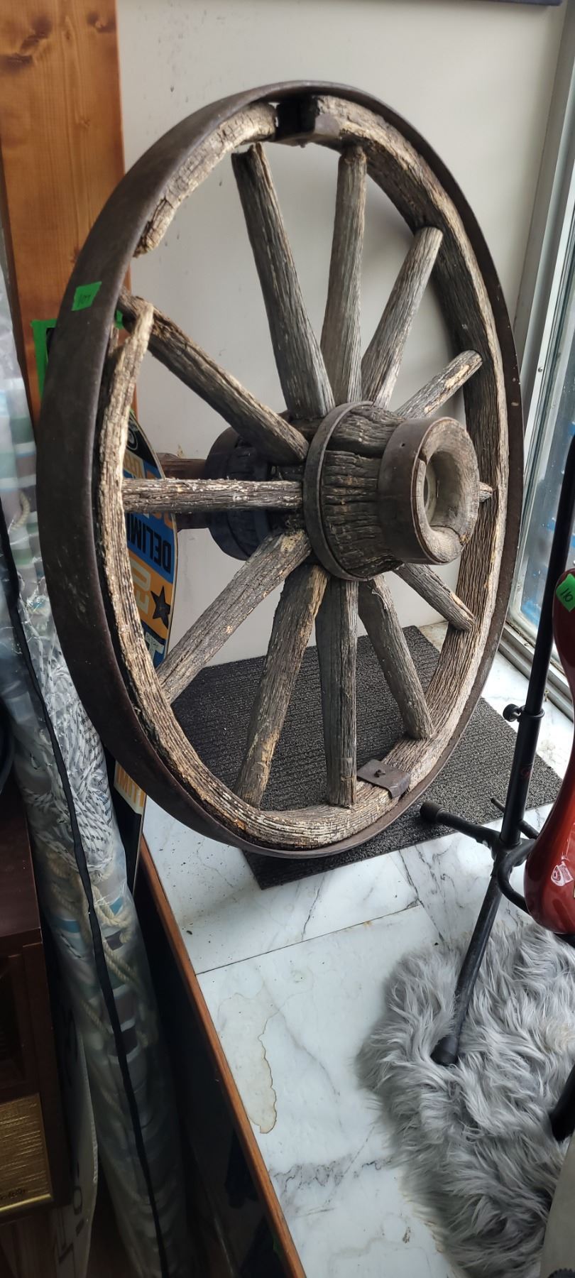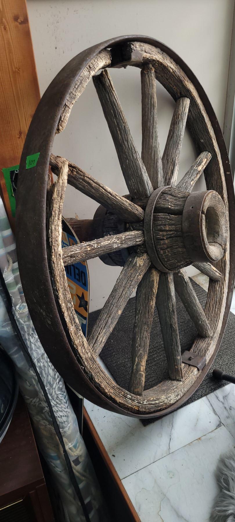 Old Wooden and Metal Wagon Wheel. 17 inches Not available for shipping
