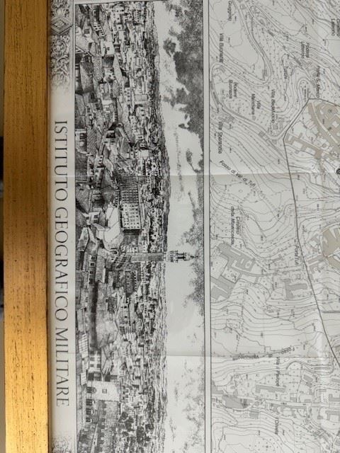 A beautifully framed reproduction on paper of an Old World Military Map of Sienna Italy, measures 41x28.25" framed