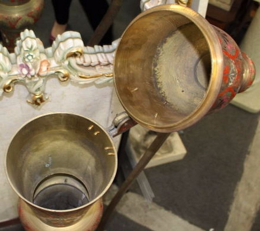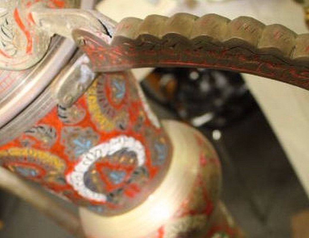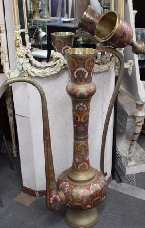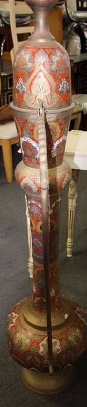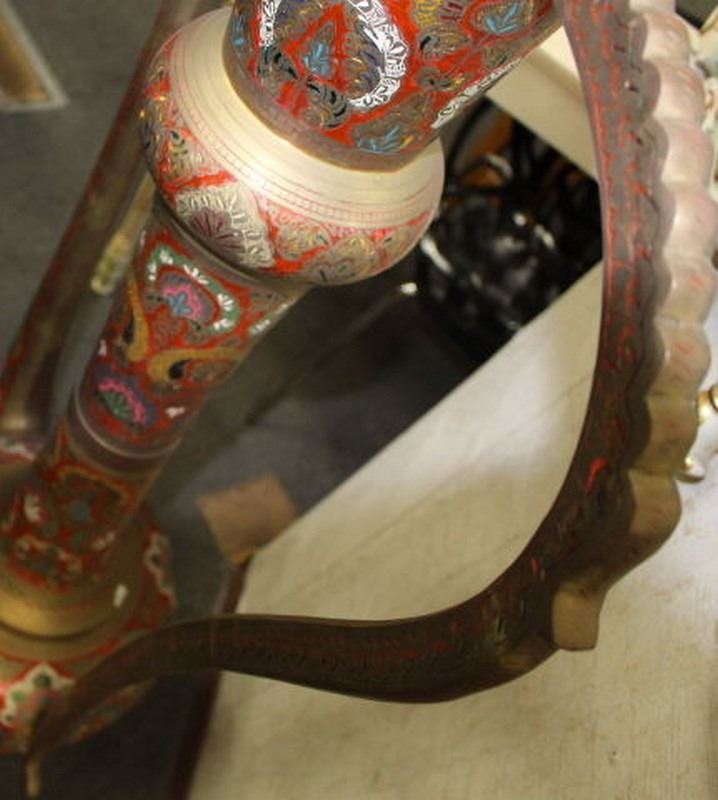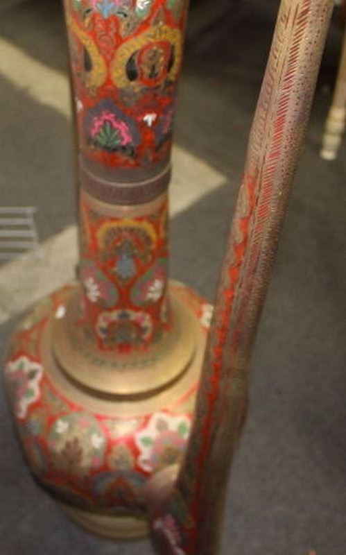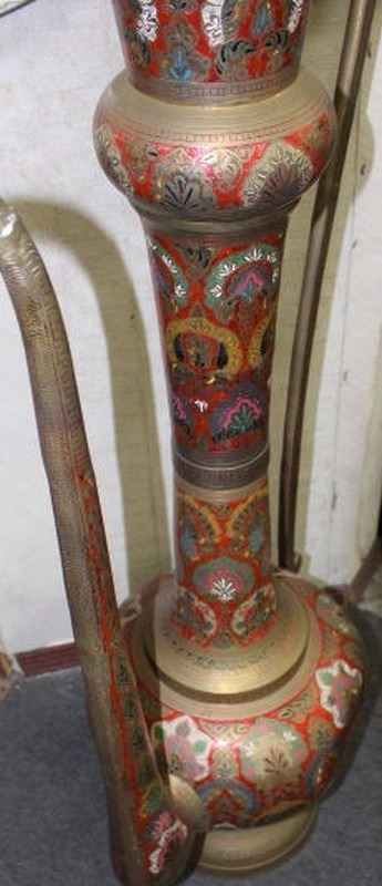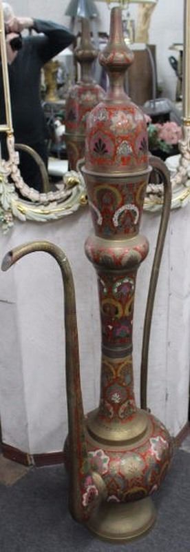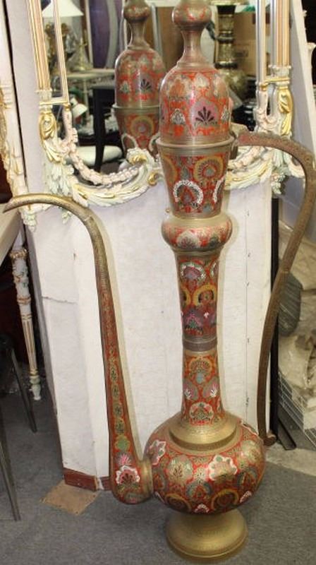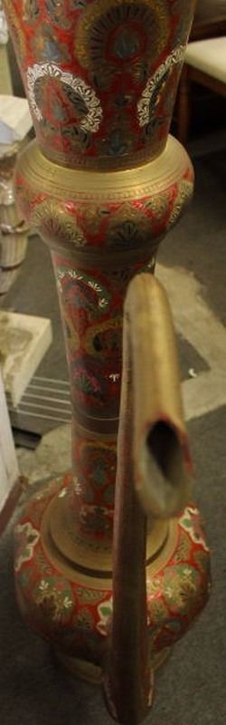 Old XXLg Asian Decorative Brass Tea Pot w. Intricate Painted Enamel Finishing./ 64"x30"x12" inches