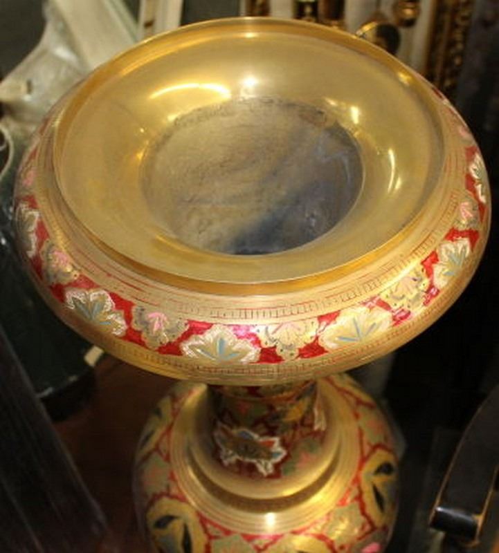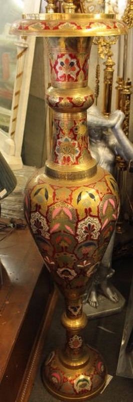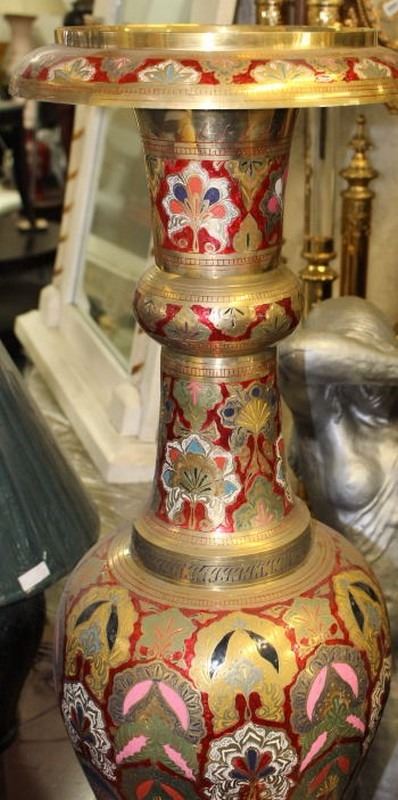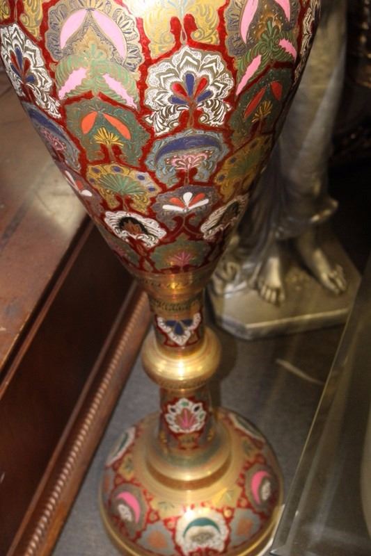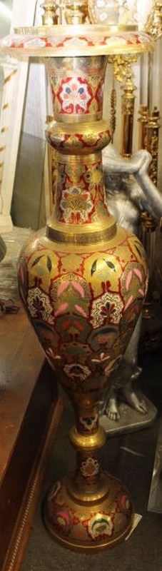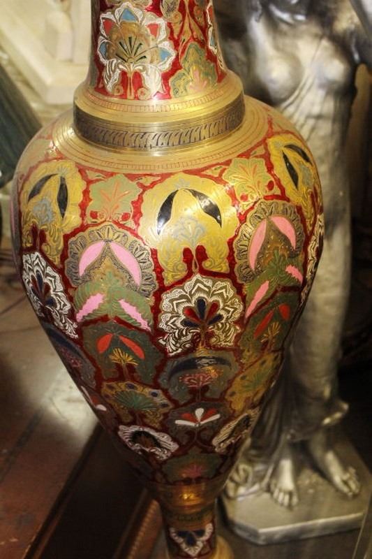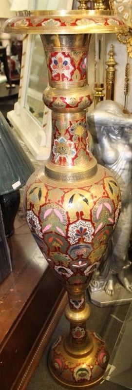 Old XXLg Asian Solid Brass Decorative Vase with Intricate Painted Enamel Finish/ 59".5x15" inches