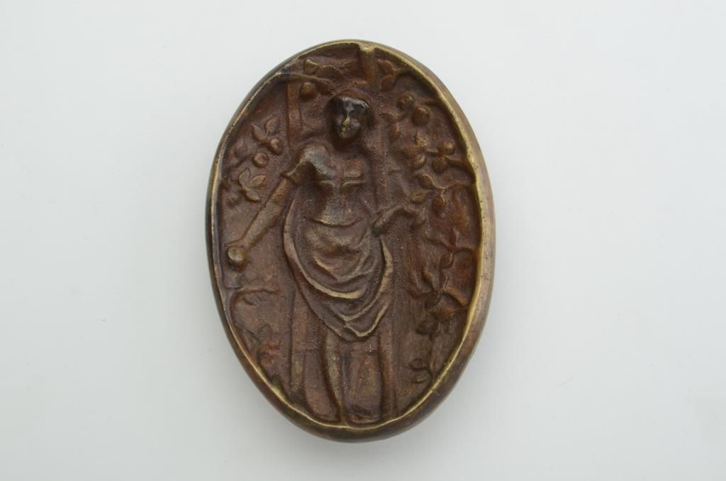 Old cast bronze “Naughty Fairy” oval dish approx. 5” x 3-1/2” in good condition. Est.: $100-$150.