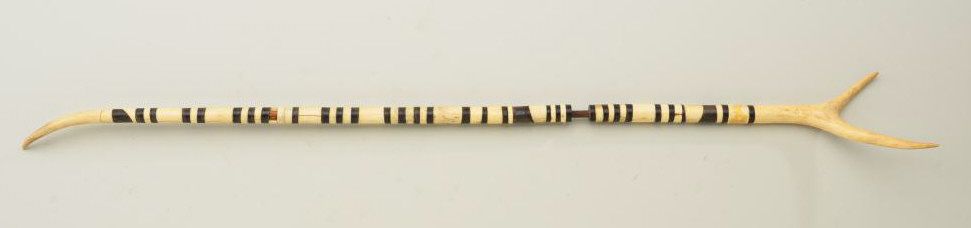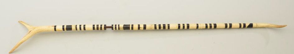 Old ceremonial stag horn staff approx. 38” overall showing some old losses and alternating colors of white, and black; from an old estate. Est.: $75-$150.