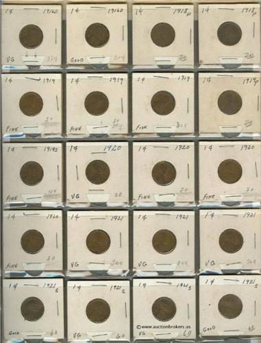 Old dealers stock in brown album; Over 180 coins, mostly Lincoln cent but some others, fun lot!