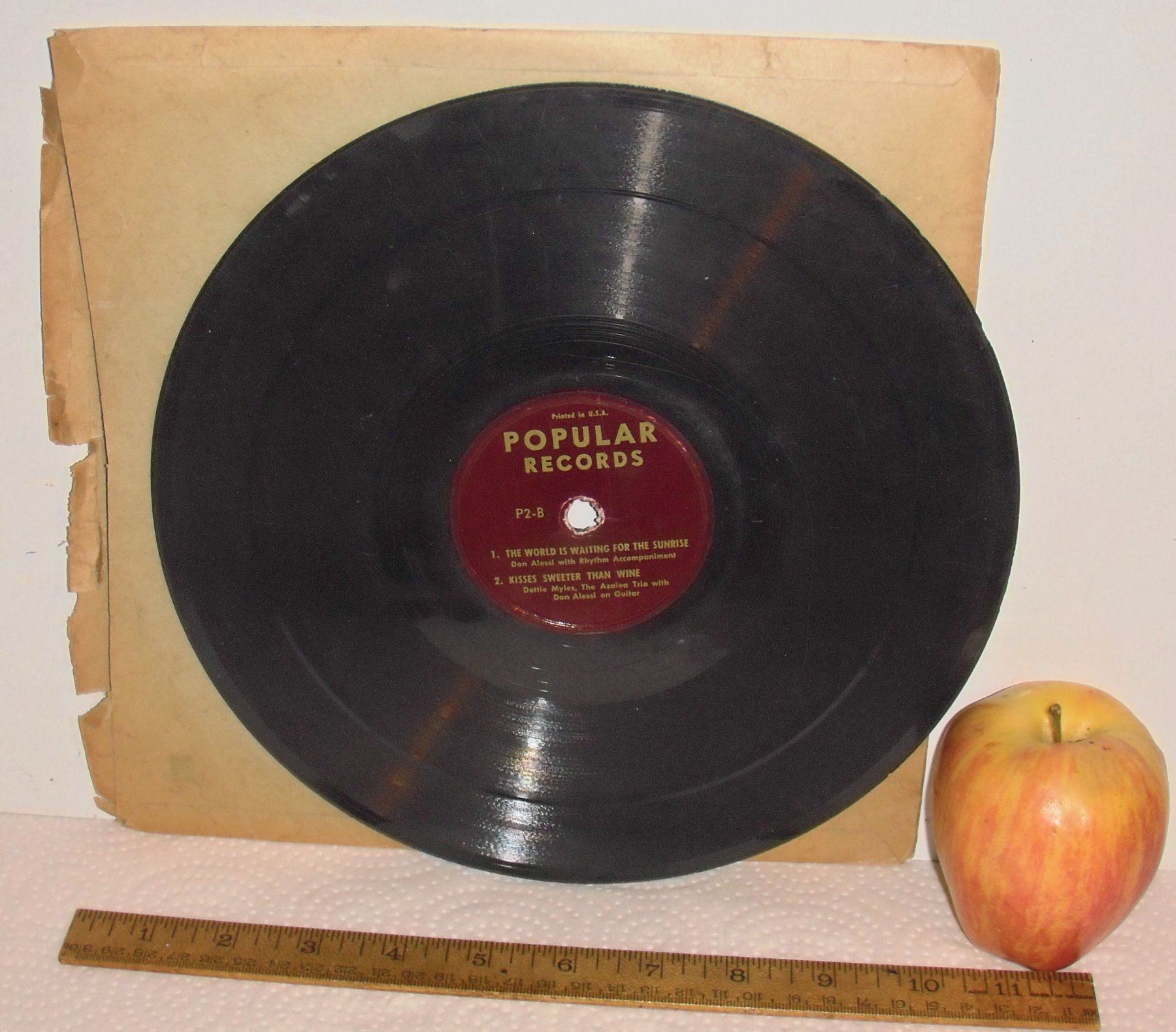 Printed in USA by Popular Records : Original Old as is played with record likely 78 with 2 songs on each side: 'The World if Waiting for the Sunrise' Don Alessi with Rhythm Accompaniment + 'Kisses Sweeter Than Wine' Dotties Myles, The Azalea Trio with Don Alessi on guitar + 'Castle Rock' with Booby Lynn with Milton Herbert Orchestra + 'I Wanna Be Near You' Dottie Myles, Teddy King, Bobby Lynn, The Azalea Trio with Milton Herbet Orchestra