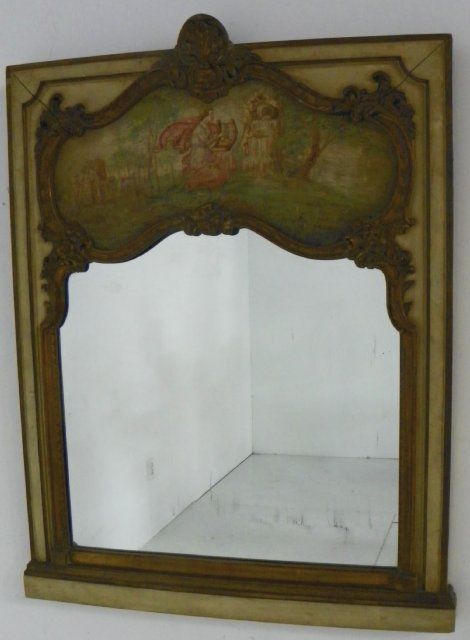 Old rococo carved & painted Trumeau mirror