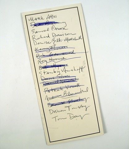 Joe (Josh Brolin) screen used, handwritten with lines through names Revenge List on an envelope. (approx. 9 3/8" x 4 1/4")