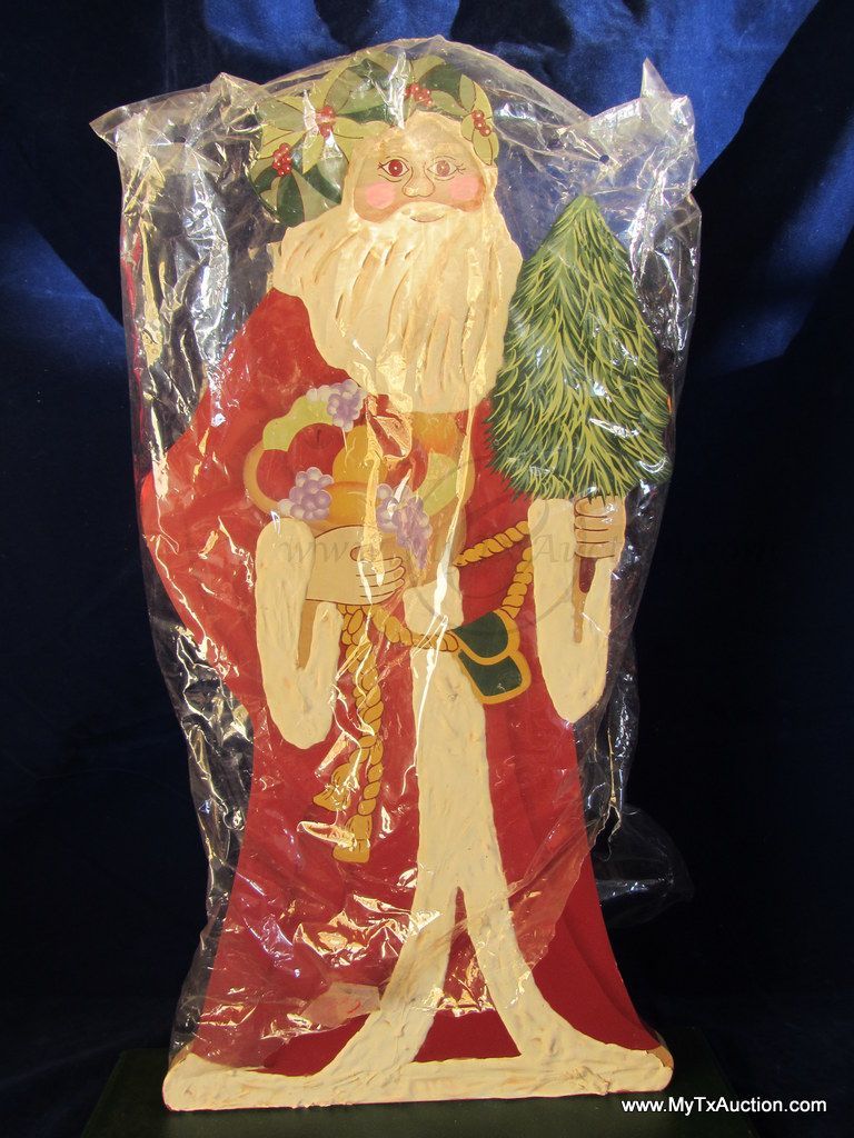 Great free standing Santa will add old world charm in any part of your home. Decked out with a holy berry hat, Christmas tree and basket of fruit Santa is ready to make everyone fell welcome.