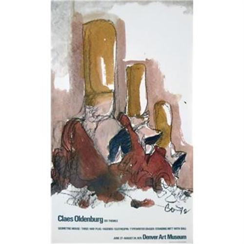 Offset lithograph in five colors on white, moderately thick, slightly textured paper. Edition of 1000; 100 copies signed and unnumbered; 900 copies unsigned and unnumbered. Published by the Denver Art Museum, Colorado. Published on the occasion of the traveling one-man exhibition Claes Oldenburg: Six Themes at the Denver Art Museu,, Colorado, June 28-August 24, 1975.