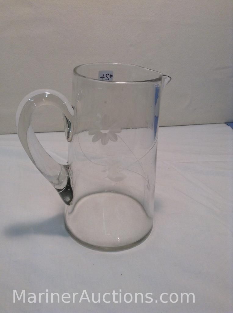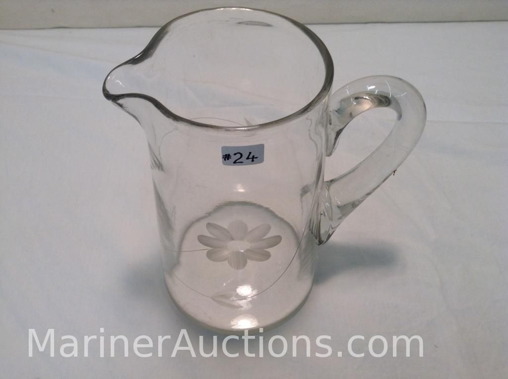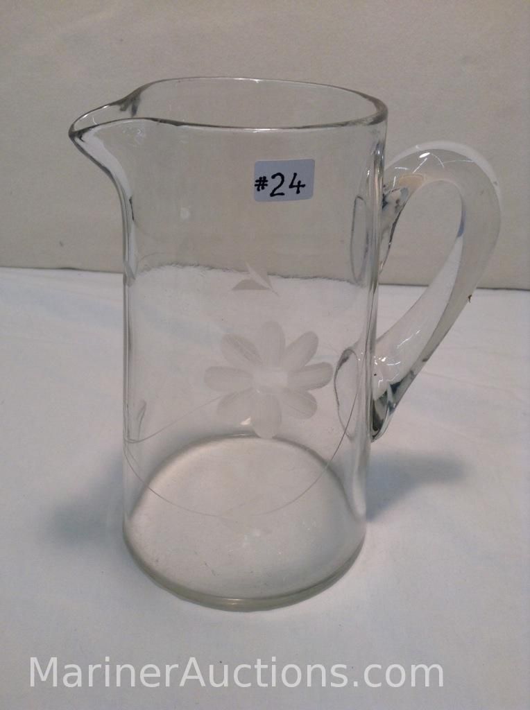 Older Corn Flower Pattern Glass Pitcher (7.5" high)