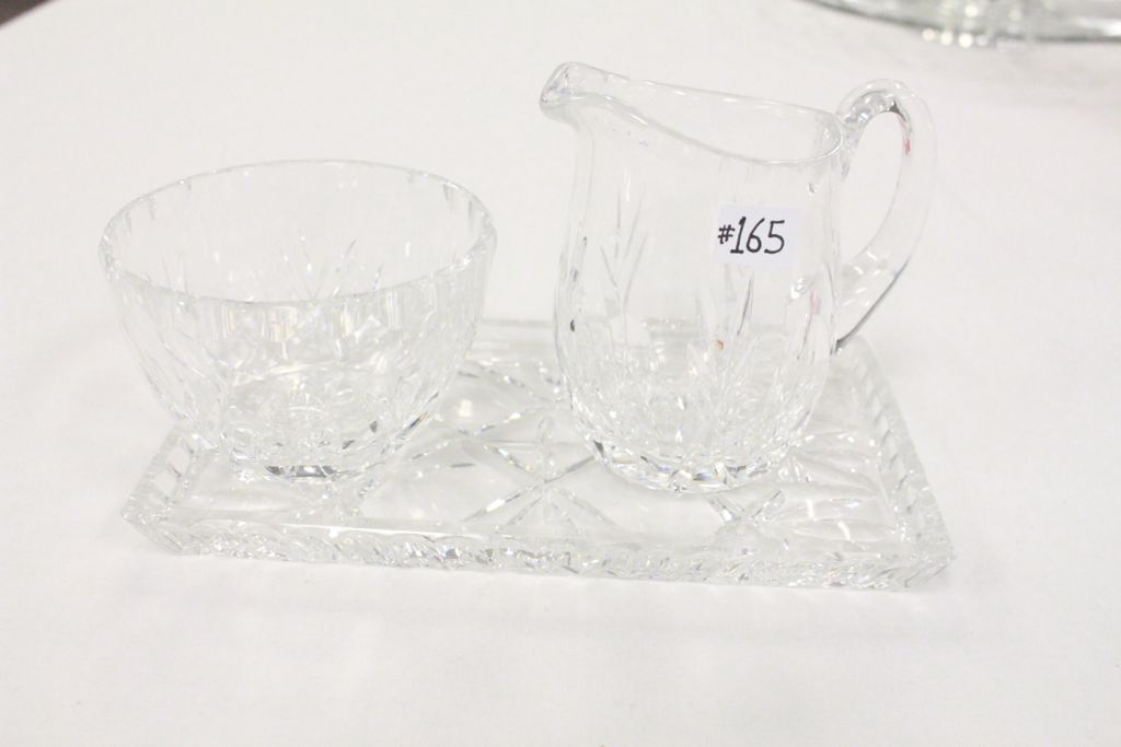 Older Crystal Cream and Sugar on Tray