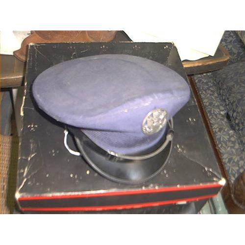 Older Style Air force Hat. It has the original service hat tag in it and it is a blue in color, and has the Air Force emblem on the front. Size is 7 1/8 and still in really nice condition. Could use a good wiping down. Hope you like it. Great collectible item.