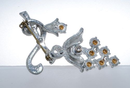 The rhinestones move back and forth. Circa 1930 -40's The rhinestones are foil backed and look like they were molded. 2.25" long.