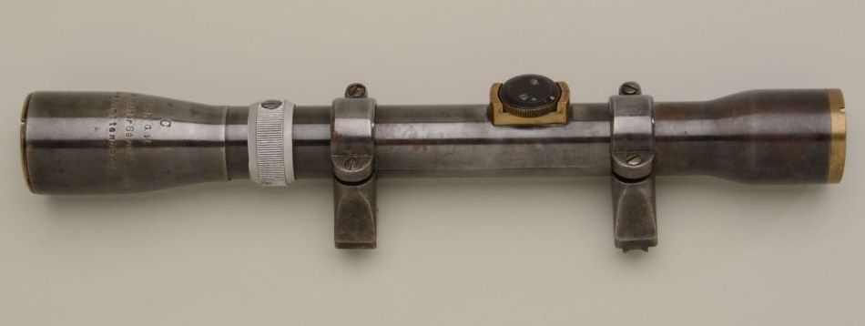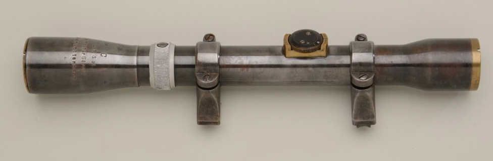 Older brass high quality rifle scope with mounts marked “C., D.R.G.M., Dr. Walter Gerard, Charlottenburg” with fine optics. Est.: $75-$150.