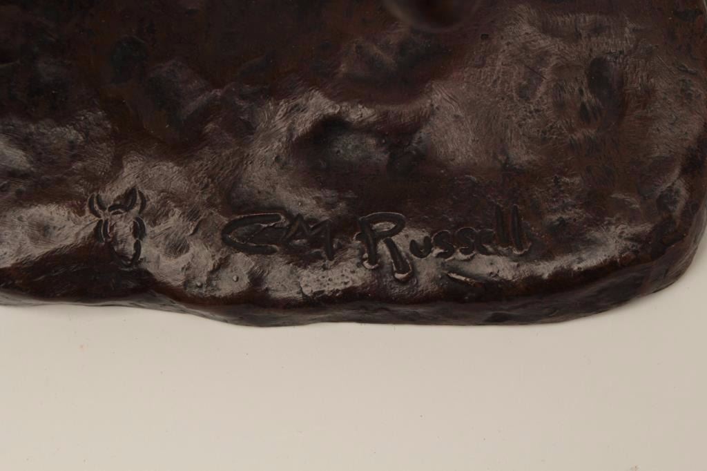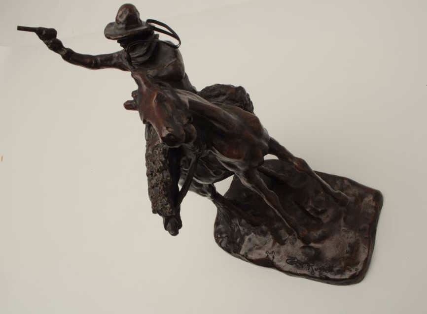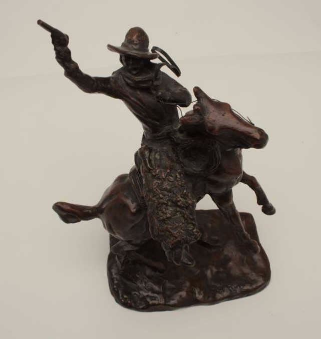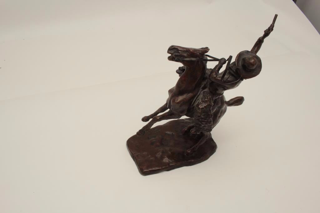 Older copy of a C.M. Russell, approximately 13” in height, great patina; cowboy on rearing horse. Est.: $200-$300.