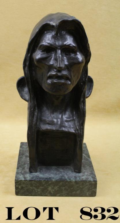 Older reproduction bronze entitled “The Savage” , originally by Frederic Remington, approx. 12” in height on stone base in overall good condition showing a nice patina; 14 of 100 limited edition with good detailand a very nice copy of Remington’s 1908 original subject. Est.: $250-$500.