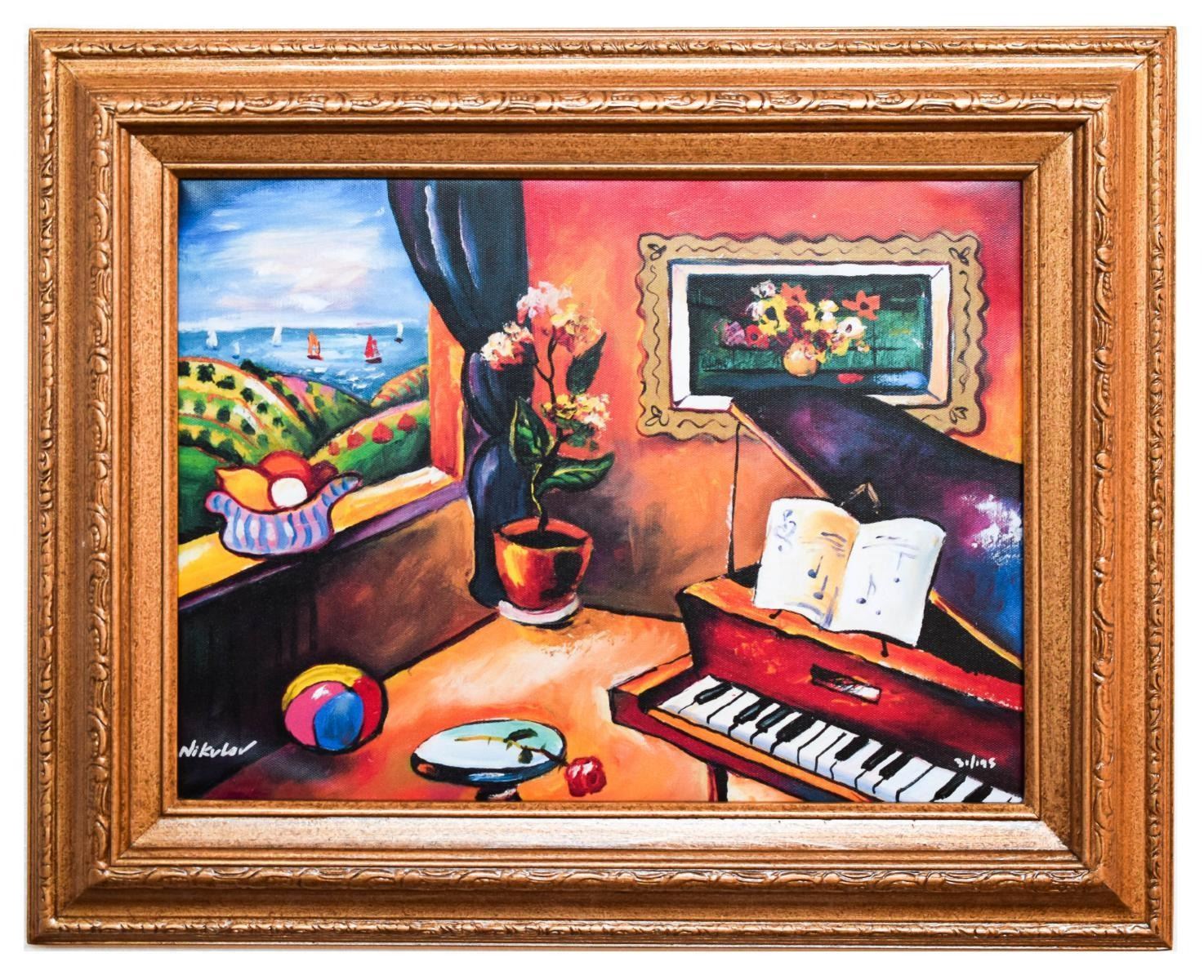 Artist: Oleg Nikulov. Medium: Original Giclee on Canvas. Title: Piano with Countryside View. Size (Unframed): 12" x 16". Size (Framed): 17.5" x 21.5". Limited Edition: Edition of 195. Certificate of Authenticity: From the publisher. Additional: Custom Framed and ready to hang.