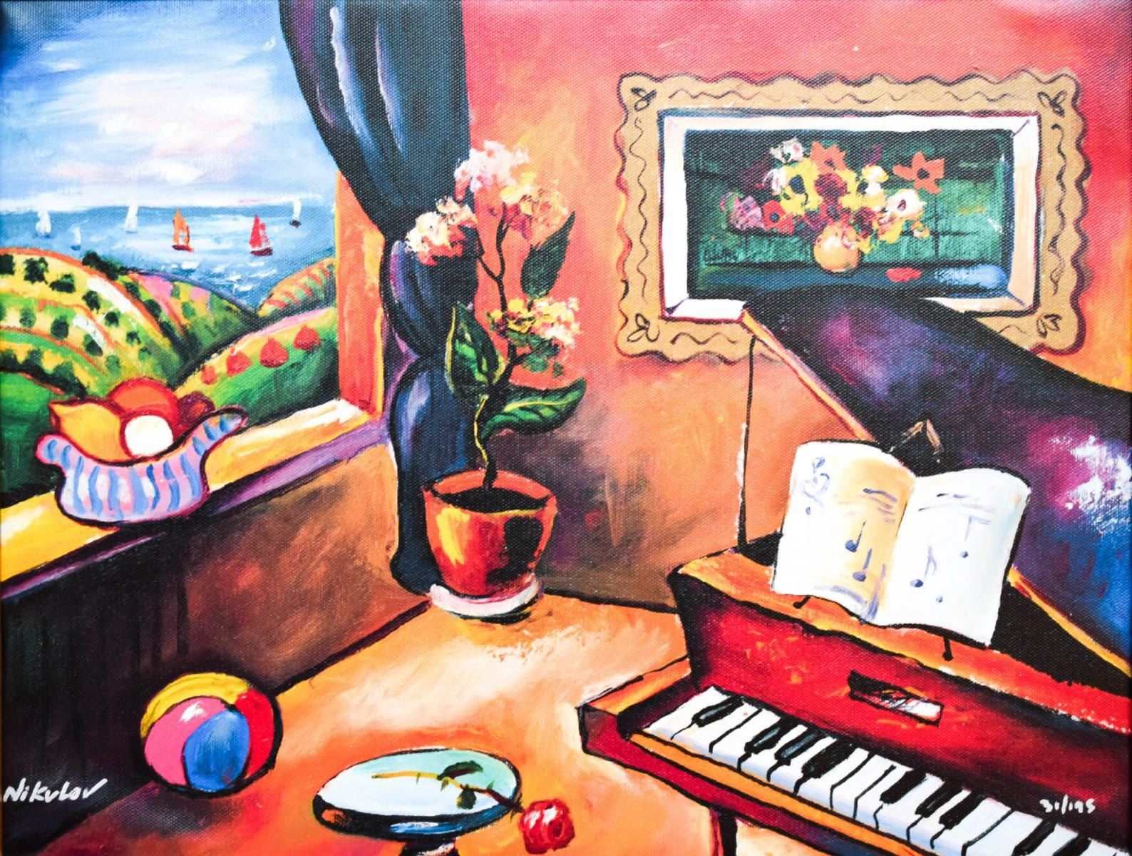 Artist: Oleg Nikulov. Medium: Original Giclee on Canvas. Title: Piano with Countryside View. Size (Unframed): 12" x 16". Size (Framed): 17.5" x 21.5". Limited Edition: Edition of 195. Certificate of Authenticity: From the publisher. Additional: Custom Framed and ready to hang. Reference# 200271.