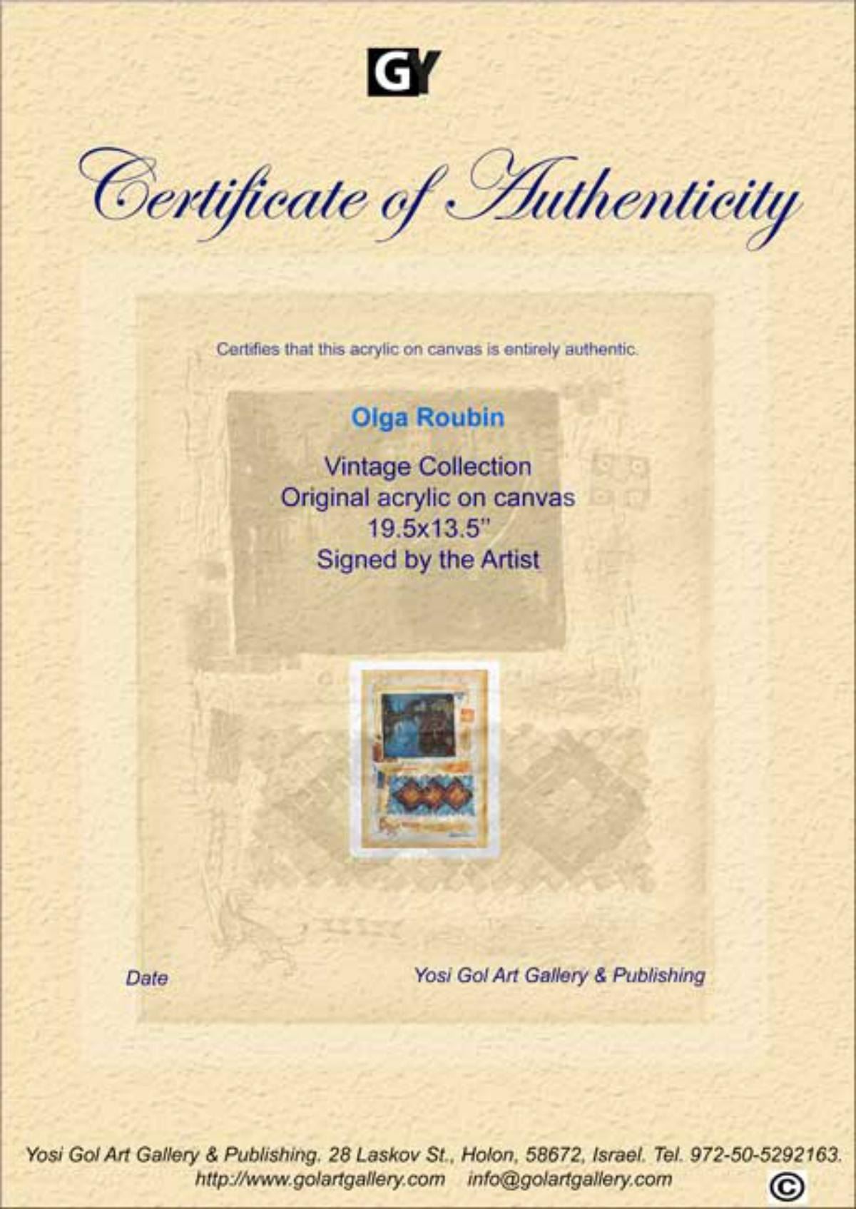 Artist: Olga Roubin. Medium: Original Acrylic On Canvas. Title: Vintage Collection. Size (Unframed): 19.5" x 13.5". Certificate of Authenticity: From the publisher. Reference# 10254.