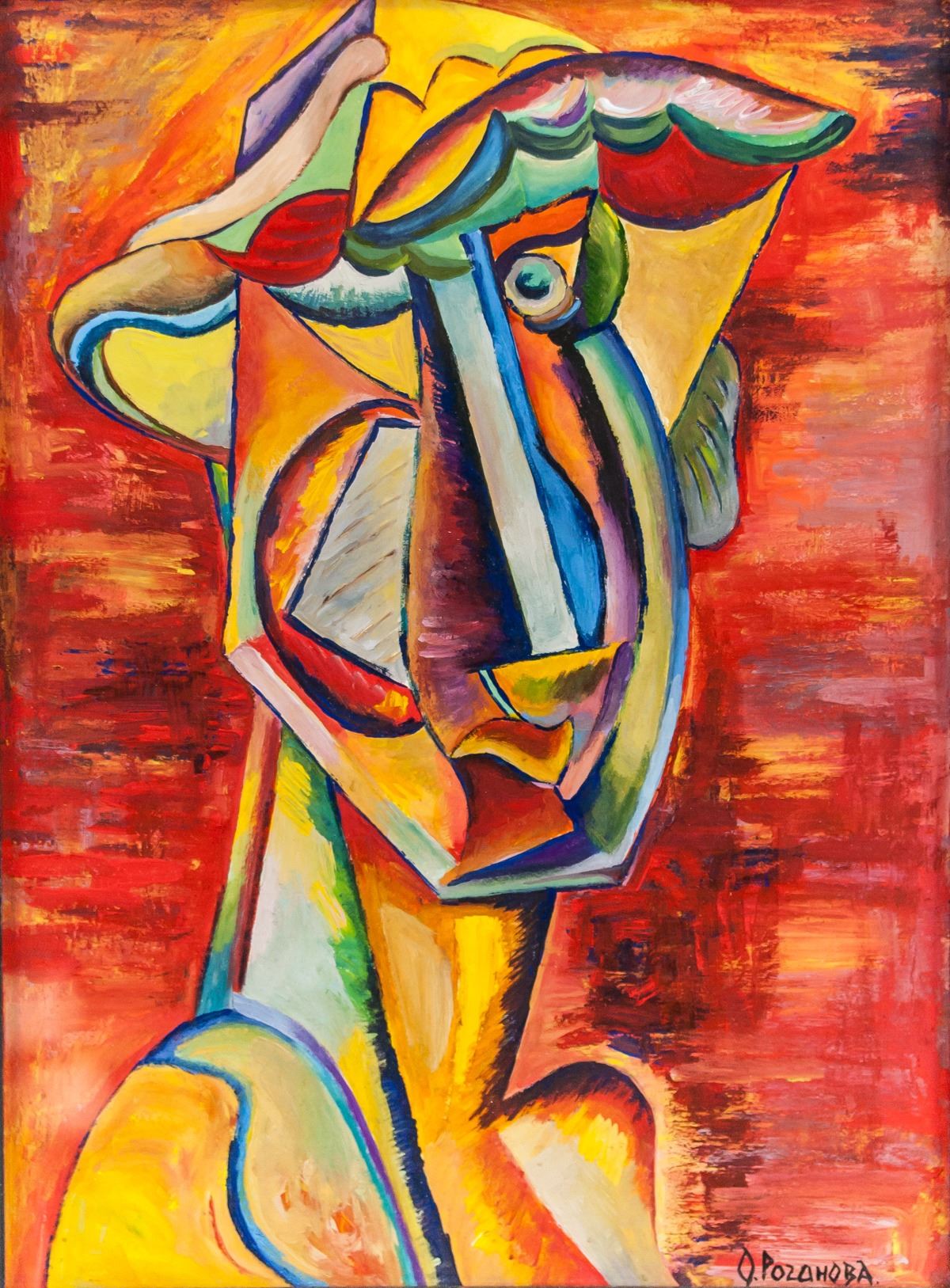 Gouache on paper, framed. Featuring a cubist portrait. Signed Cyrillic O Rozanova on the lower right corner. Attributed to Olga Rozanova (1886-1918, Russian). 28 x 20.5 cm (11.0 x 8.1 inches). PROVENANCE: Southern Ontario estate.