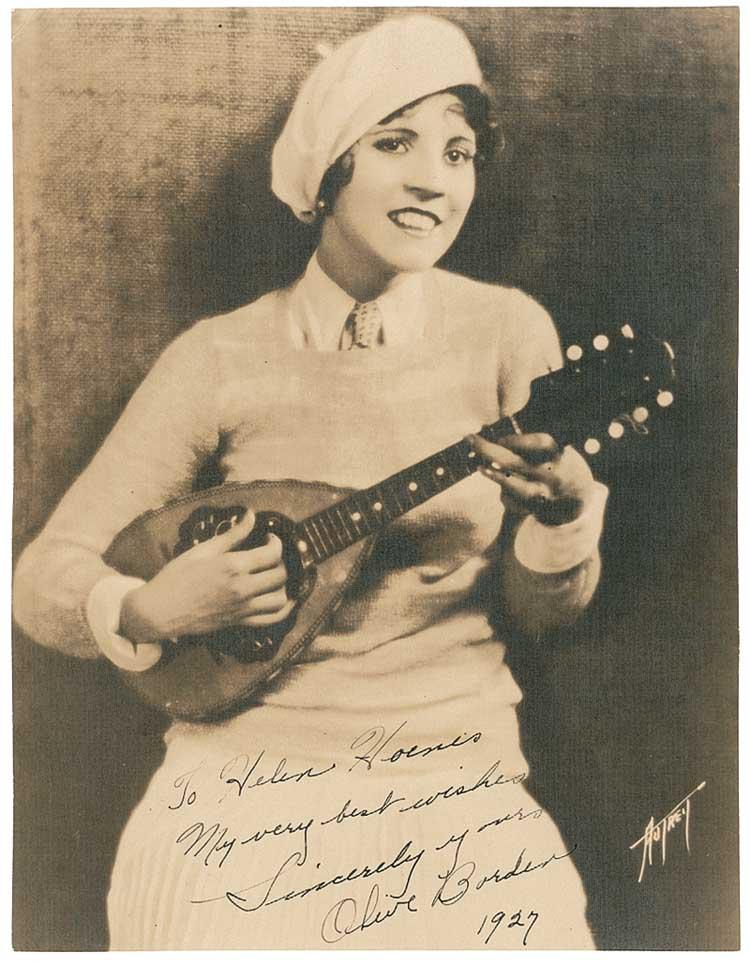 Leading lady of Hollywood silents and early talkies. Vintage matte-finish 7 x 9 photo, signed and inscribed in fountain pen “To ‘Helen Hoenes’ My very best wishes, Sincerely yours, Olive Borden 1927.” In fine condition. Pre-certified PSA/DNA and RRAuction COA.
