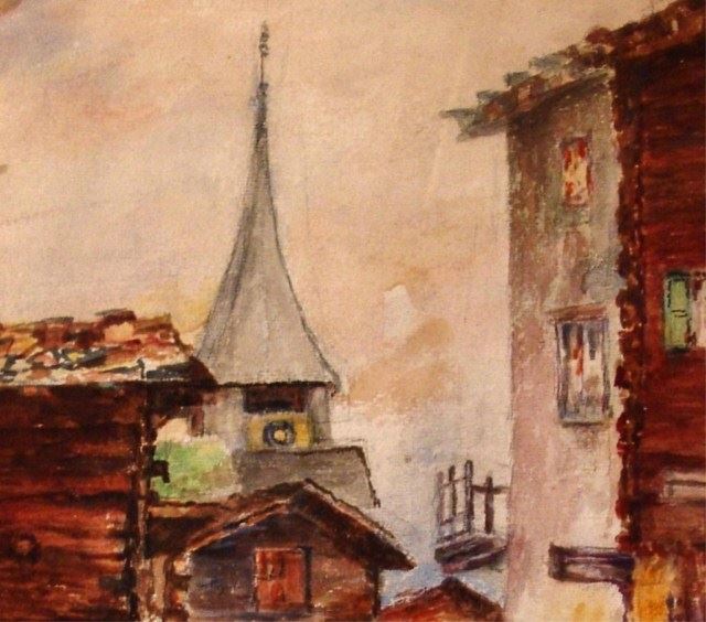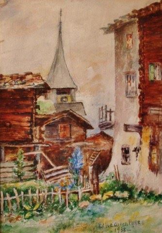 Landscape, Village scene", 14" x 10" sight, Signed lower right, 1938, -562509-D