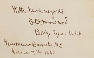 Oliver Otis Howard (November 8, 1830 – October 26, 1909) was a career United States Army officer and a Union general in the American Civil War. As a brigade commander in the Army of the Potomac, Howard lost his right arm while leading his men against Confederate forces at the Battle of Fair Oaks/Seven Pines in June 1862, an action which later earned him the Medal of Honor. As a corps commander, he suffered two humiliating defeats at Chancellorsville and Gettysburg in May and July 1863, but recovered from the setbacks as a successful corps and later army commander in the Western Theater.Known as the \"Christian general\" because he tried to base his policy decisions on his deep religious piety, he was given charge of the Freedmen\'s Bureau in mid-1865, with the mission of integrating the freed slaves into Southern society and politics during the second phase of the Reconstruction Era. Howard took charge of labor policy, setting up a system that required free slaves to work on former plantation land under pay scales fixed by the Bureau, on terms negotiated by the Bureau with white land owners. Howard\'s Bureau was primarily responsible for the legal affairs of the freedmen. He attempted to protect freed blacks from hostile conditions, but lacked adequate power, and was repeatedly frustrated by President Andrew Johnson. Howard\'s allies, the Radical Republicans, won control of Congress in the 1866 elections and imposed Radical Reconstruction, with the result that freedmen were given the vote. With the help and advice of the Bureau, freedmen joined Republican coalitions and won at the ballot boxes of most of the southern states. Howard was also a leader in promoting higher education for freedmen, most notably in founding of Howard University in Washington and serving as its president 1867–73.After 1874, Howard commanded troops in the West, conducting a famous campaign against the Nez Perce tribe. Utley (1987) concludes that his leadership against the Apaches in 1872, against the Nez Perce in 1877, the Bannocks and Paiutes in 1878, and against the Sheepeaters in 1879 all add up to a lengthy record, although he did not fight as much as George Custer and Nelson Miles.
