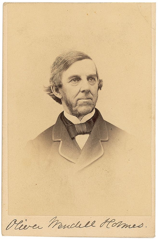 Original 2.25 x 3.75 carte-de-visite bust portrait of Holmes, by Marshall of Boston, signed in the lower border in black ink, “Oliver Wendell Holmes.” In fine condition, with some trivial marks and soiling, and a trimmed top edge.