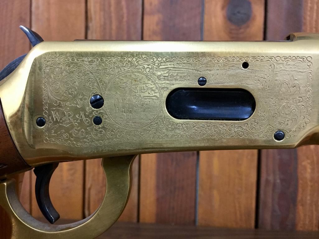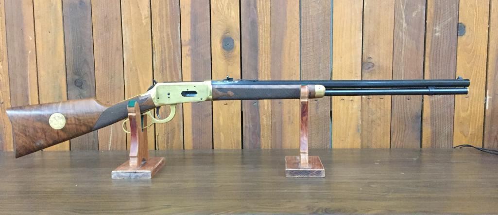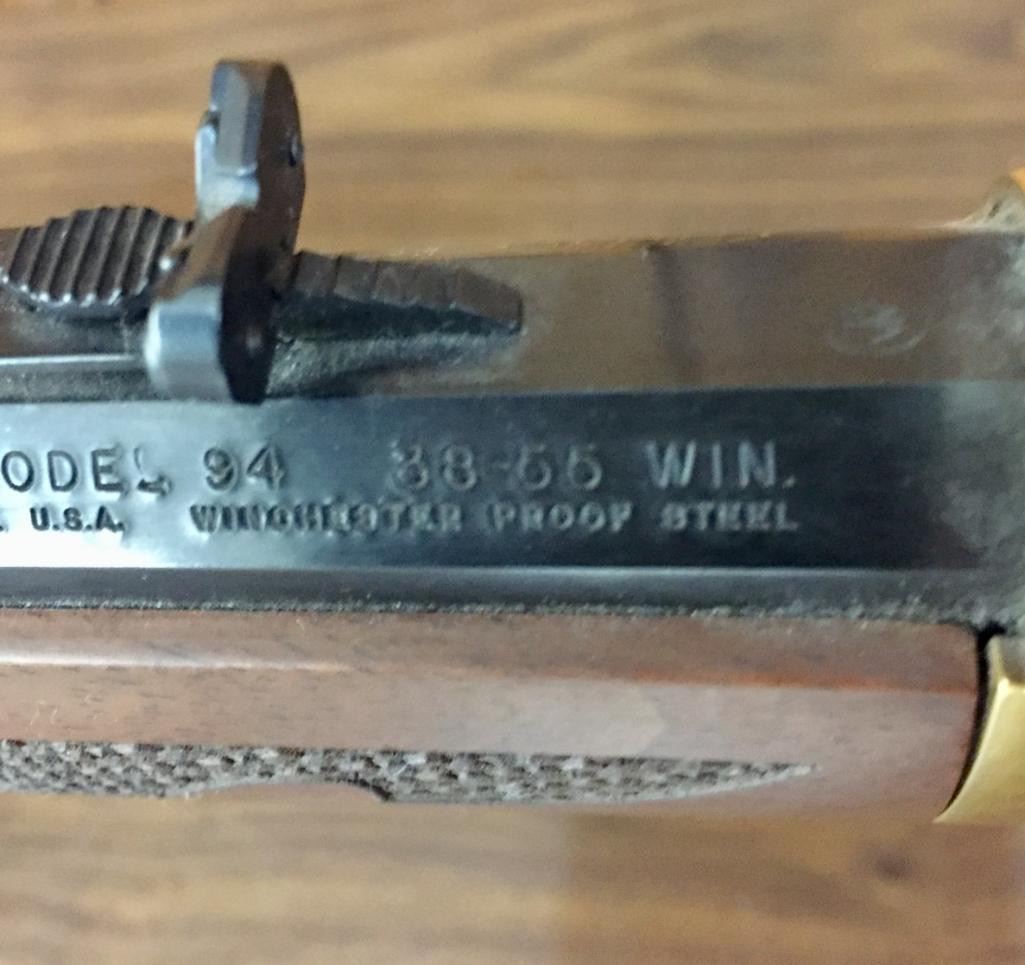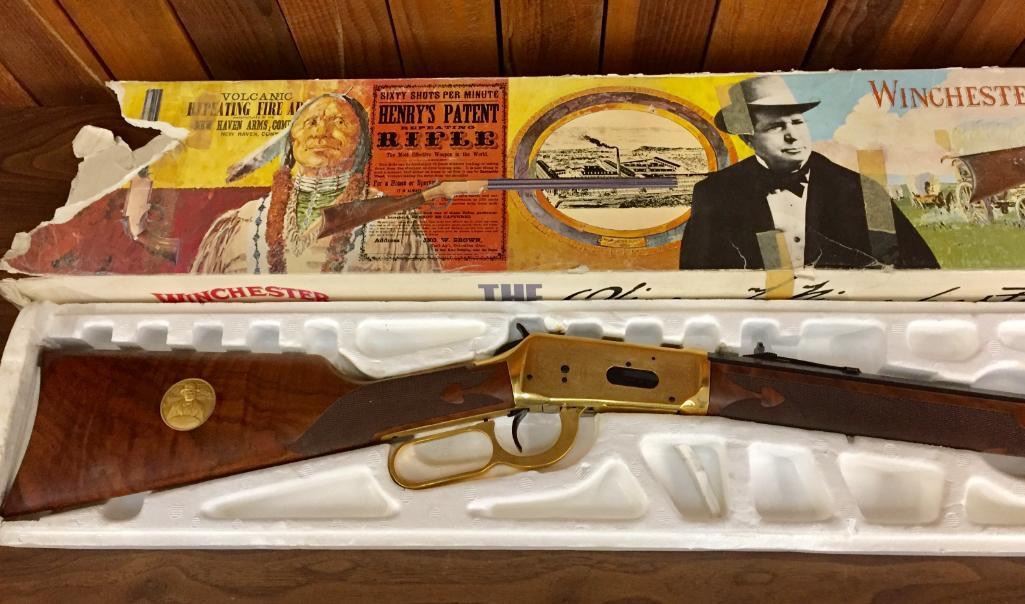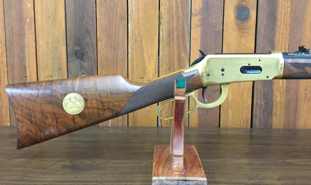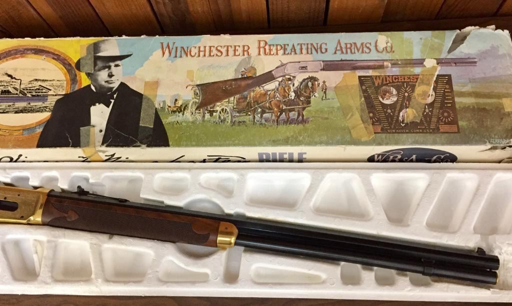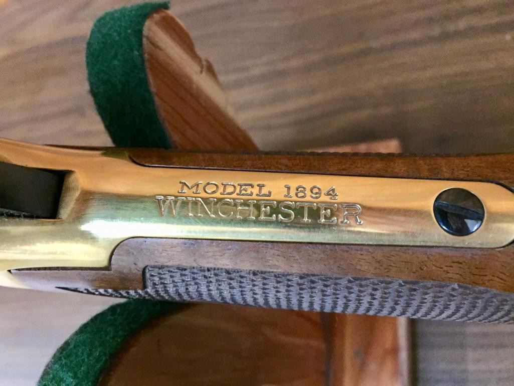 Since the early 1960s, Winchester has produced a number of special Model 1894 rifles that commemorated certain historic events, places, or individuals. In some cases they are slightly embellished and in others are quite ornate. For your bidding pleasure we offer for sale this engraved, Oliver Winchester, Model 94, .38 caliber lever action, commemorative rifle with original box. Maker: Winchester. Serial No. OFW4098 Size: Barrel measures 24" Circa: 1980 Please look closely at the pictures - they are an important part of our description. Shipping: There will be a $15 handling / packaging fee for shipping this lot. The actual cost of postage will be added on top of that. *****This firearm requires an FFL Transfer*****