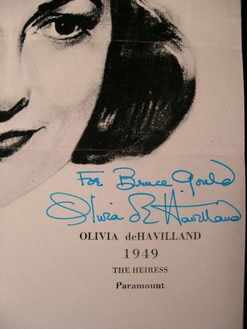 From the William Wyler romantic-drama 'The Heiress,' this is a lifelike drawn portrait of actress Olivia de Havilland from the 1949 film. The photo is a beautiful rendition of the famed actress and is signed in light blue ink by the star herself. (measures approx. 8"x 10")
