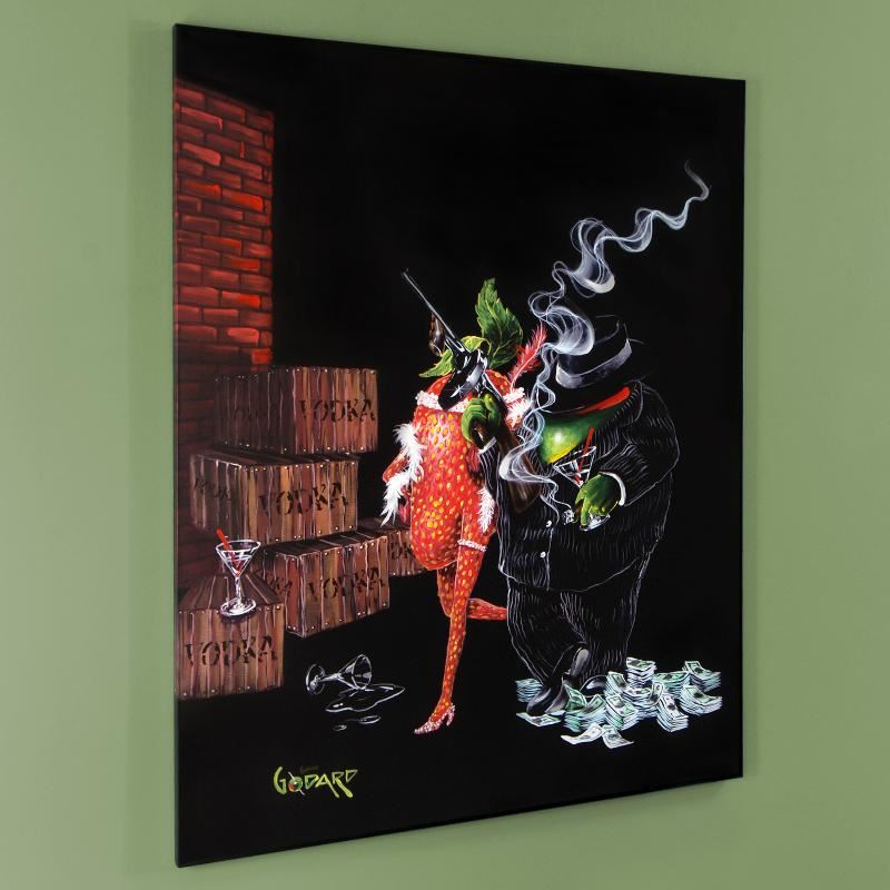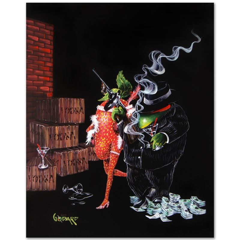 With unforgettable characters and undeniable charm, Michael Godard creates artworks that are sure to be the centerpiece of any room! "Ollie Capone" is a limited edition giclee on stretched canvas, G numbered and bears Godard's authorized signature! This piece comes gallery wrapped and ready to hang. Includes Certificate of Authenticity! Measures approx. 17.5" x 22" (image).