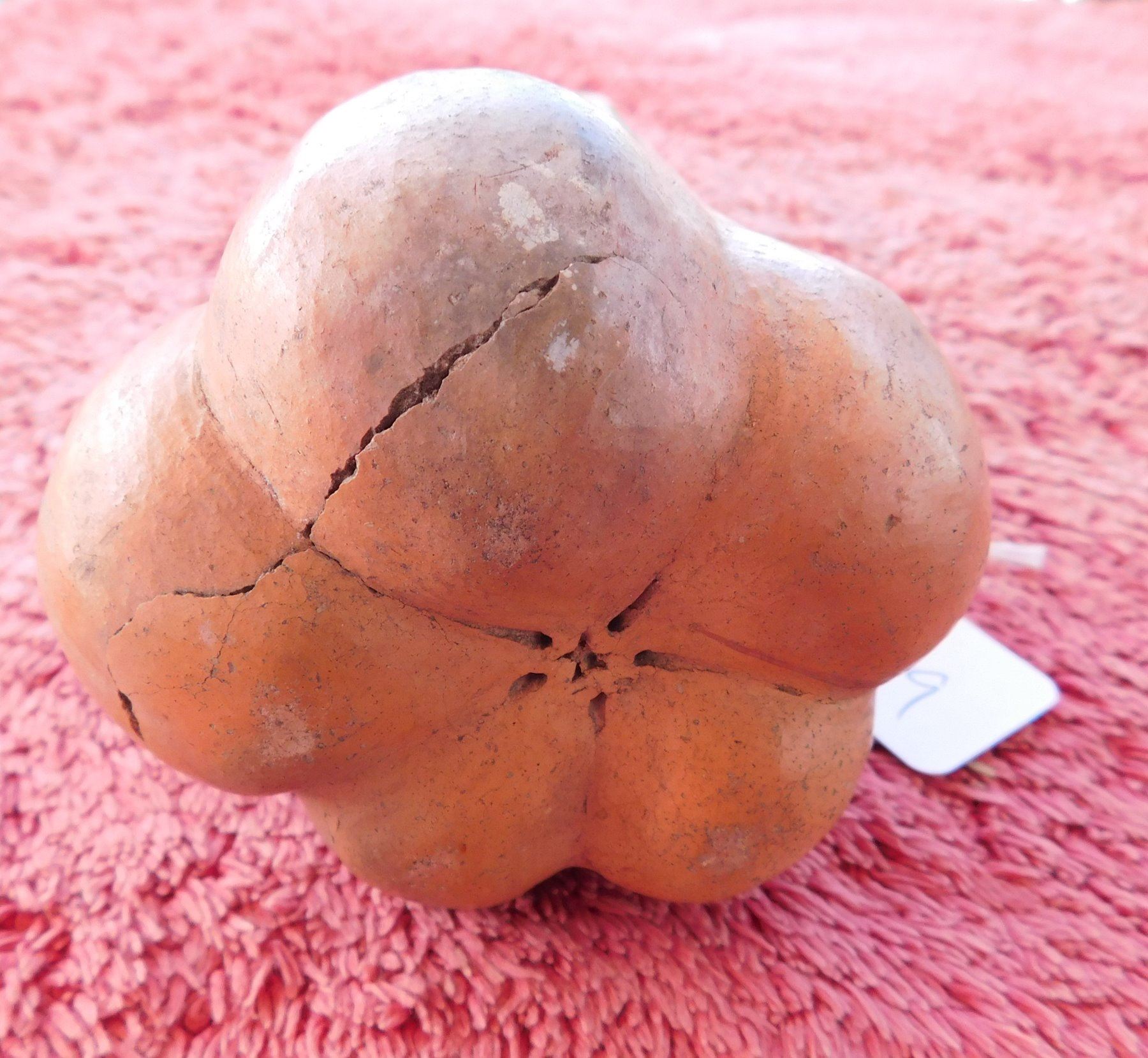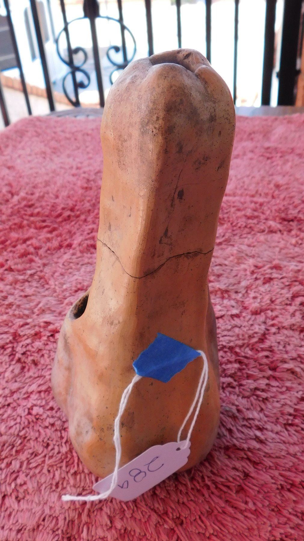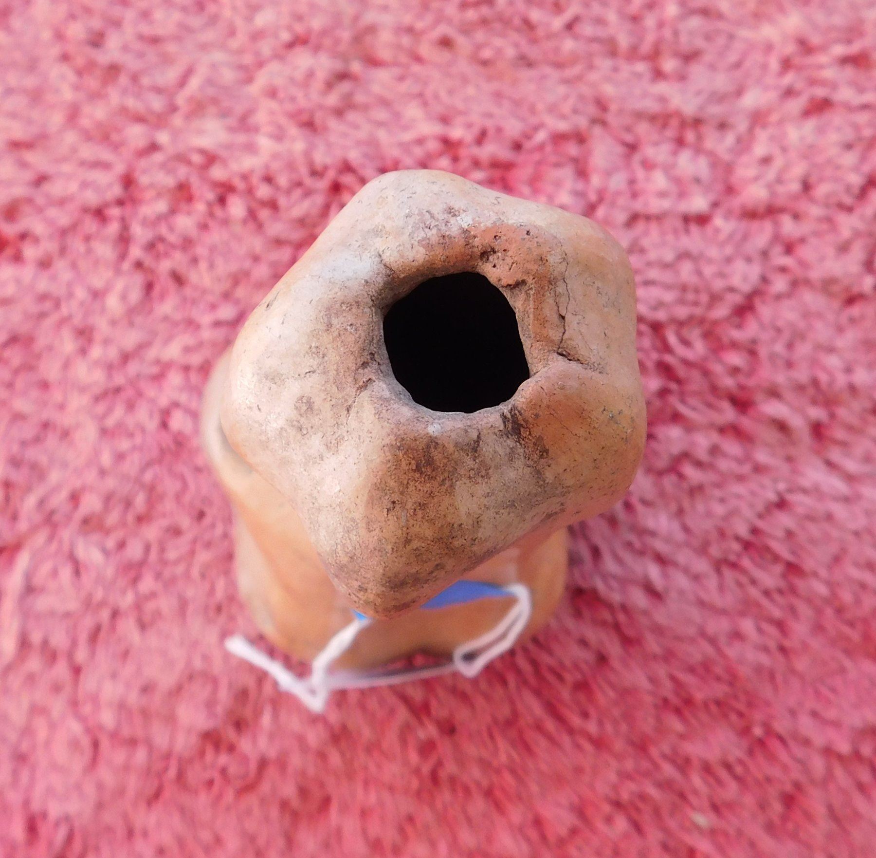 Olmec Clay Squash Pipe, pre-Columbian item. Made of clay, the item measures 4" x 7.5" x 3.5". Mexico. From an old, 1960s California collection. Condition: As found, cracked, see images. Shipping: $25.50 w/insurance and signature.