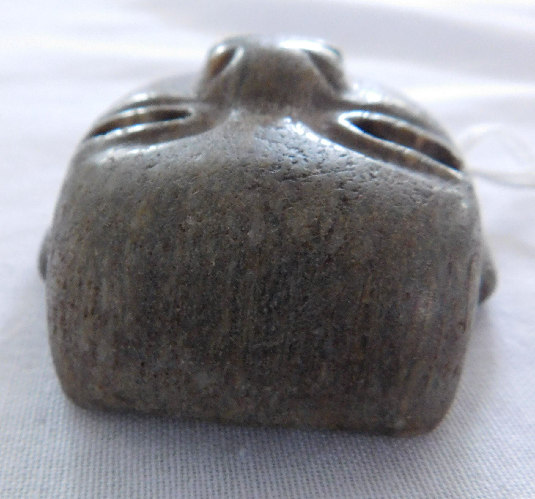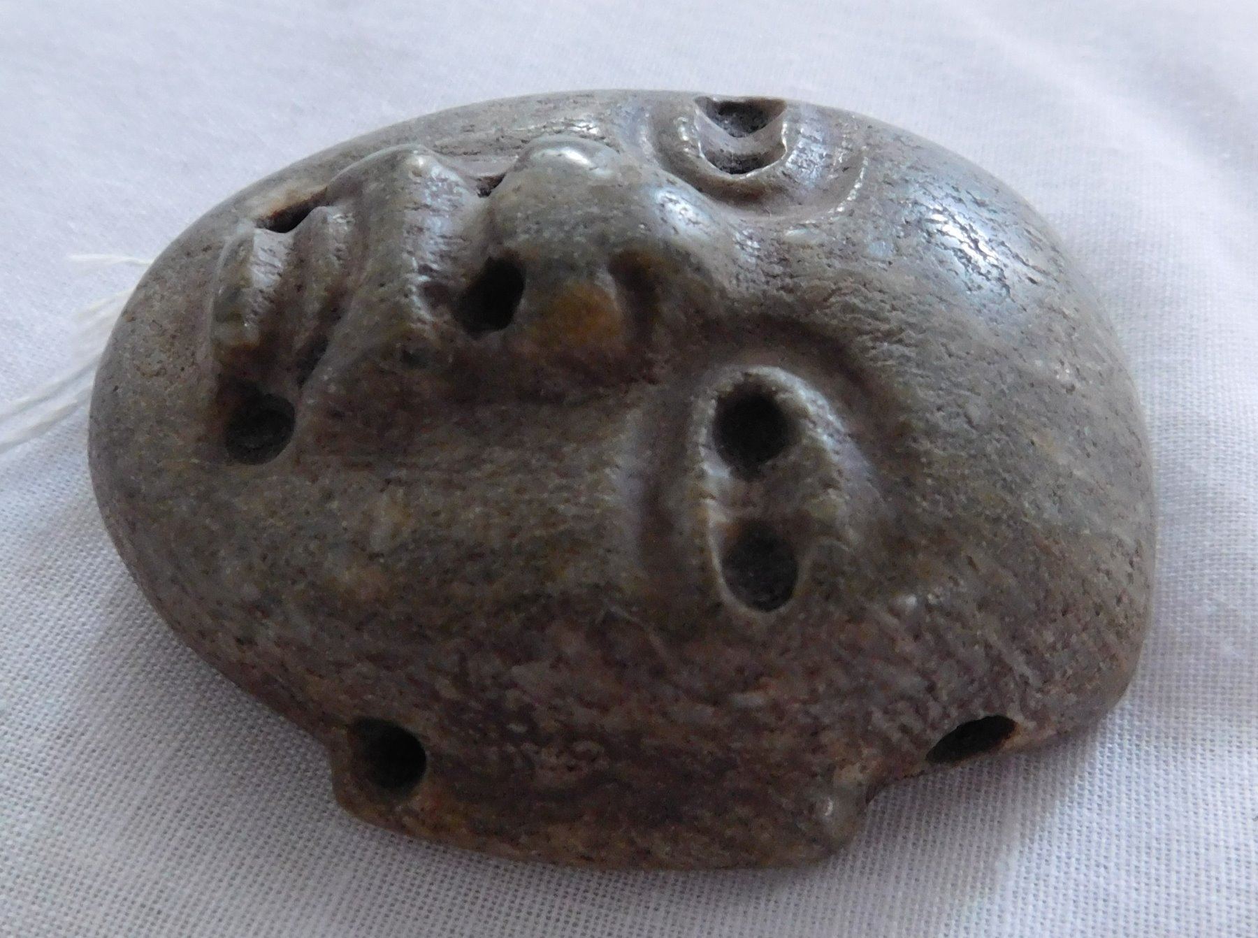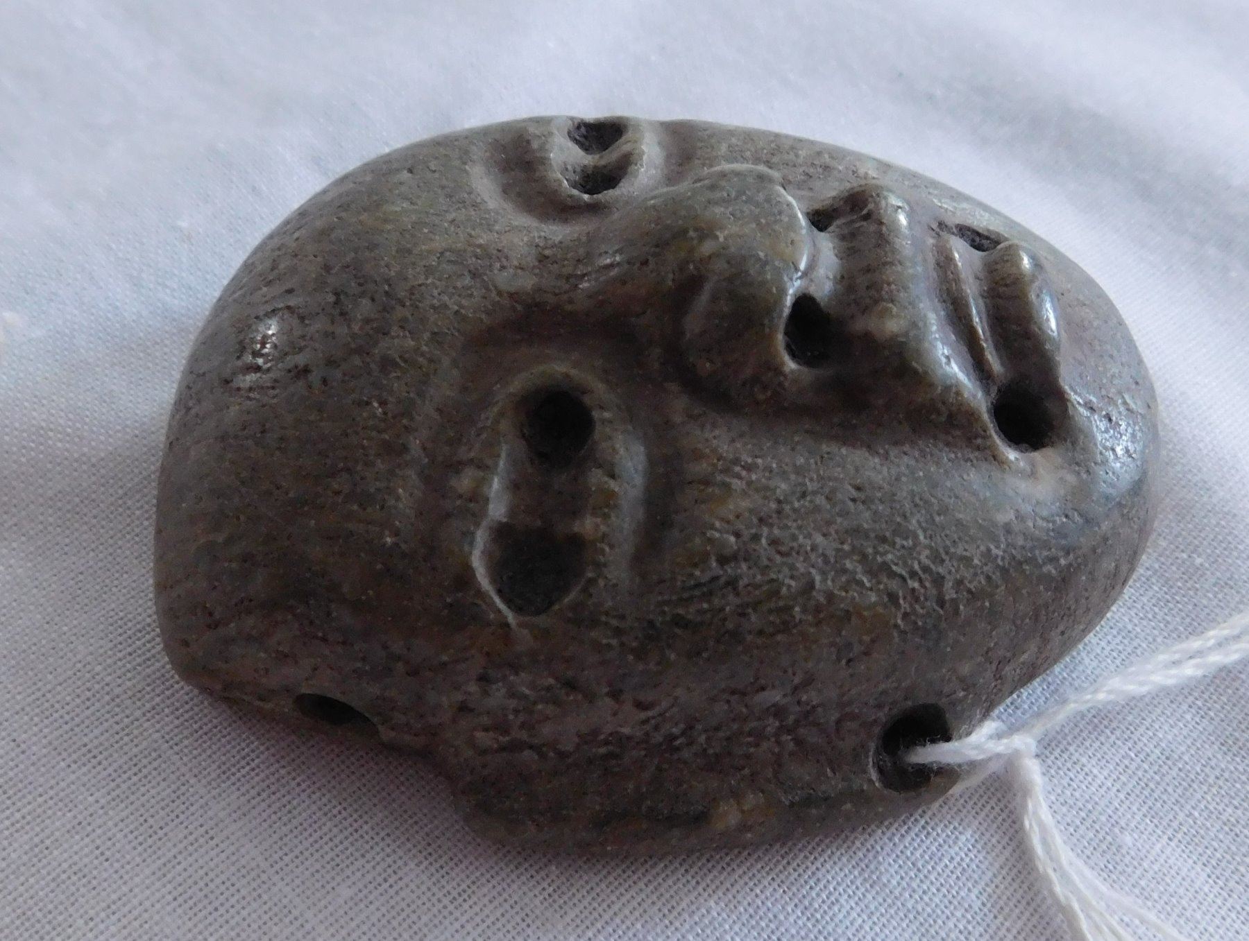 Olmec Maskette, pre-Columbian item. Made of green stone, the item measures 2.5" x 2" x 1". Veracruz, Mexico. From an old, 1960s California collection. Condition: Good, see images. Shipping: $14.50 w/insurance and signature, due to value.