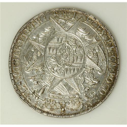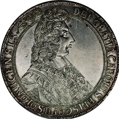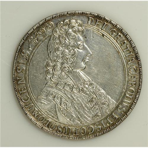 <B>Olmutz. Karl III Josef Taler 1705, </B></I>KM115, Davenport 1209, lightly toned AU, bold design features, two tiny spots on the obverse.<BR><BR><b>Shipping:</b> Coin/Currency (<a target="_blank" href="http://www.heritageauctions.com/common/shipping.php">view shipping information</a>)