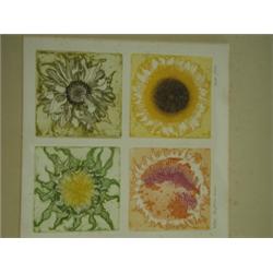 Olwen Jones 'SUNFLOWER SEASONS' Coloured etching, signed and inscribed in pencil, no. 30/50...