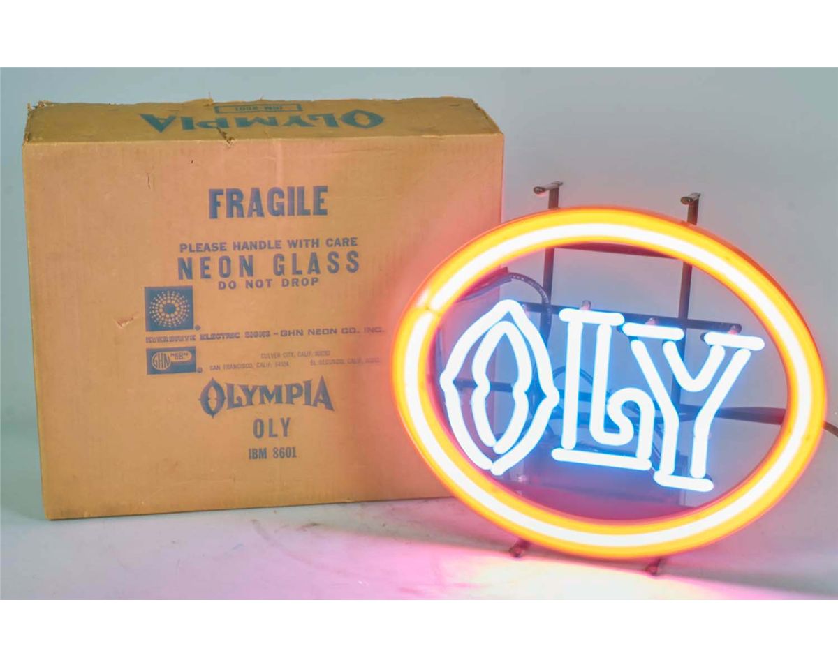 New old stock. IBM 8601 by Everbrite Electric Signs & GHN Neon Co. Inc. circa 1960s. Orange oval border with blue neon. Never put on display. Condition (Near mint). Size 21" x 17-1/2" x 7"