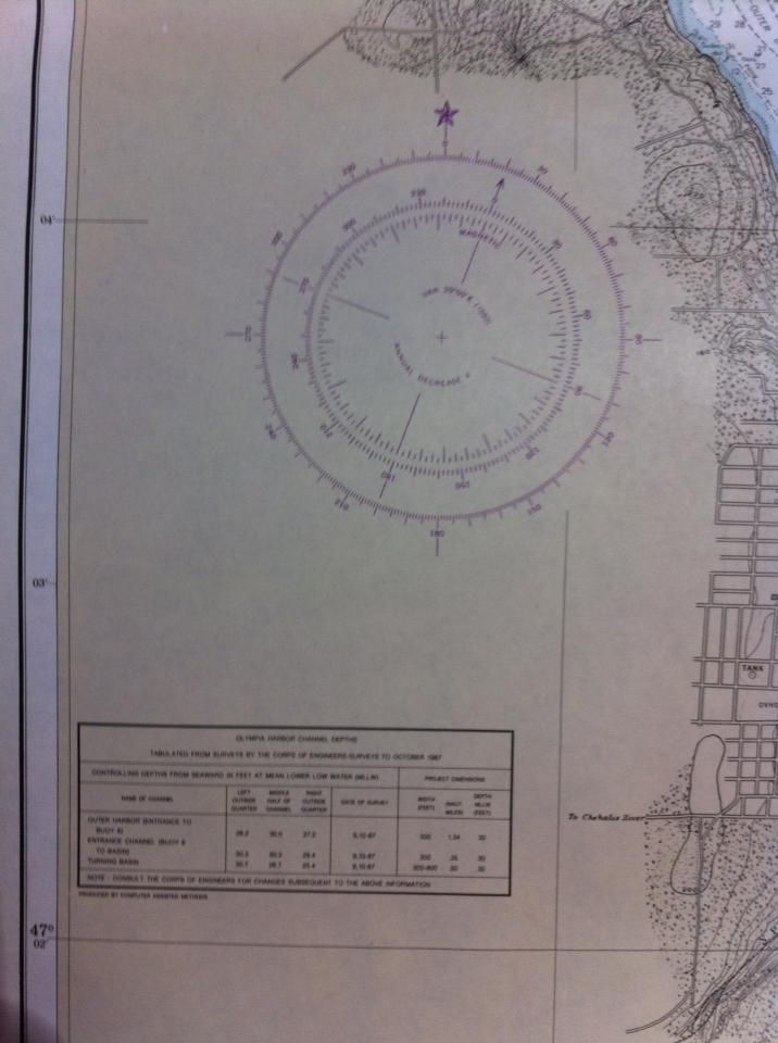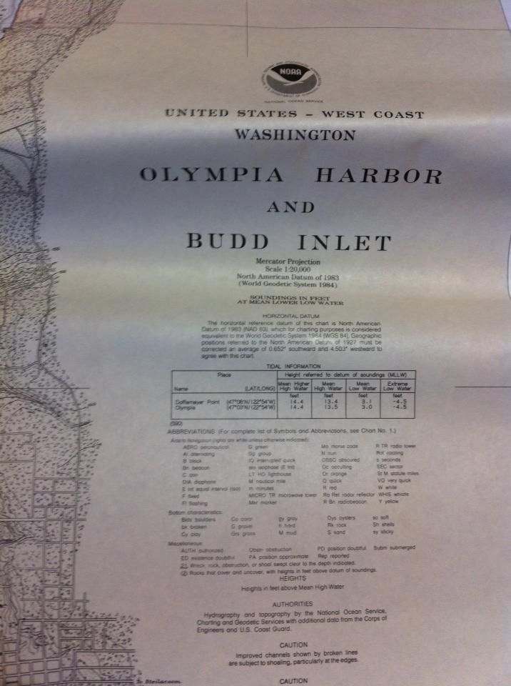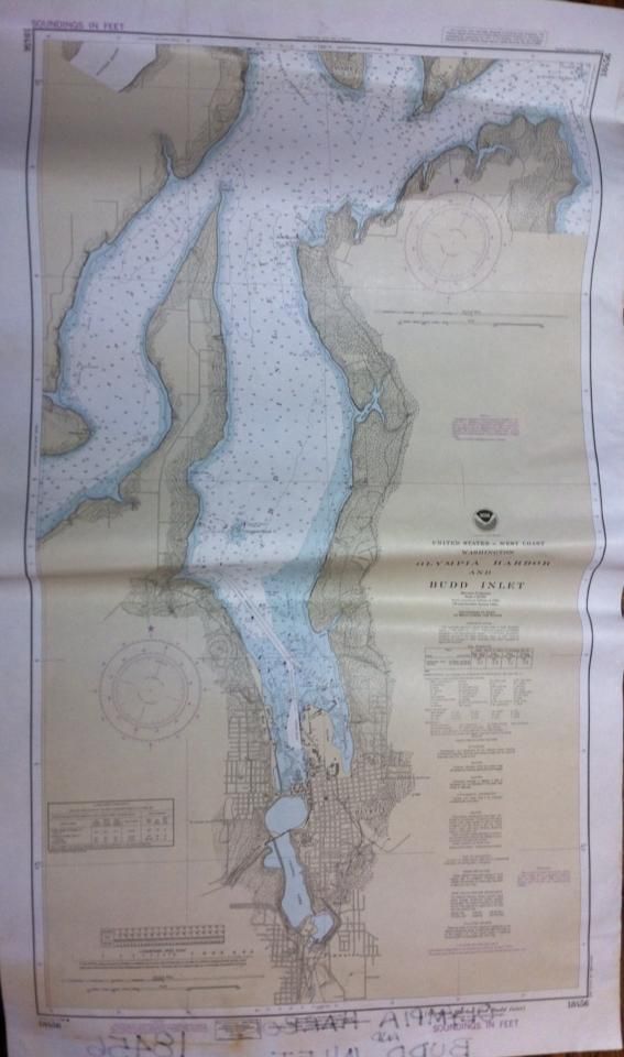 This is an actual Marine Chart of Olympia Harbor and Budd Inlet from a recycled ship. They are not framed and come complete with the original folds. Documentation will be provided from the auction company..