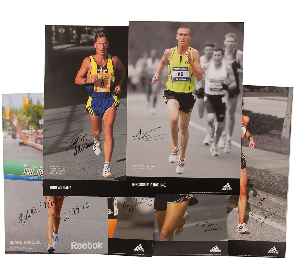 Six color posters, all approximately 12 x 18, each signed in felt tip by the respective Olympian pictured. Signers are: Todd Williams, Tim Broe, Jen Rhines, Blake Russell, Amy Hastings, and Andrew Carlson. In fine condition, with some scattered light creases and wrinkles.