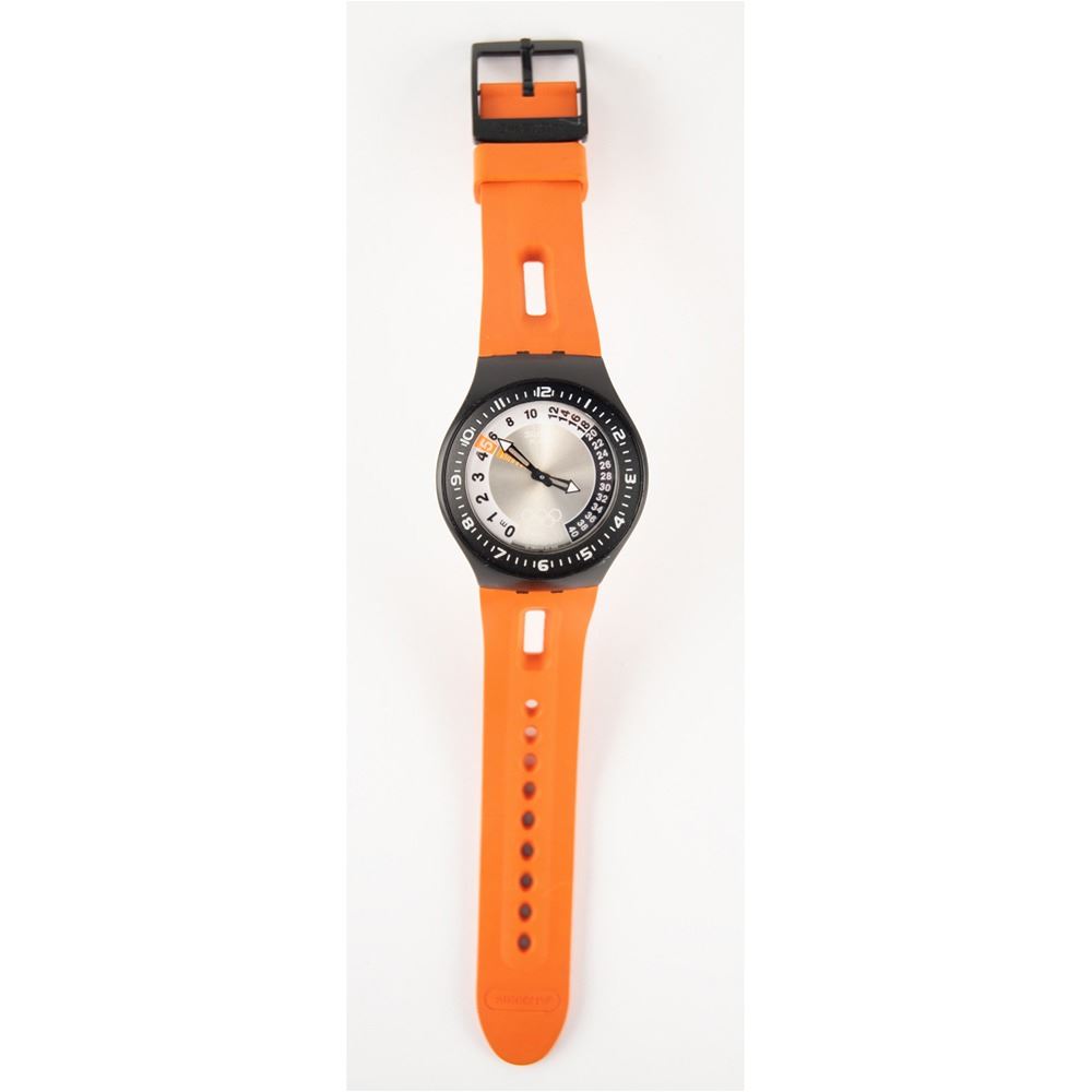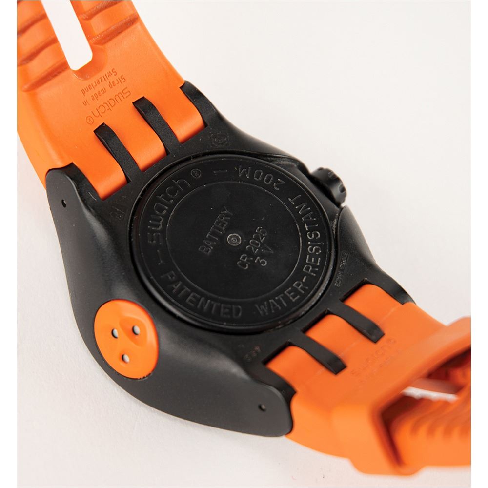 An Olympic 200m 'Climbing Lobster' Fun Scuba dive watch made by Swatch (CR 2025, 3V), with orange rubber strap, black case, and white Olympic rings against a stainless steel dial. In fine condition.