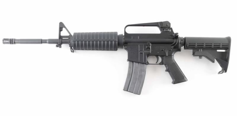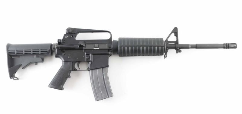 Semiautomatic rifle manufactured circa 2009. Features parkerized finish, black plastic furniture, 6 position collapsing stock with slot for sling and fixed swivel at toe, round carbine length hand guards, 16" hard chrome lined M4 profile barrel, 5 flute flash suppressor, bayonet lug, adjustable sights (front post sight with protector ears, A2 style rear L-flip peep with range adjustment wheel), shell deflector built into upper receiver, forward assist, spring loaded ejection port cover, later style lower receiver with fence around magazine release, manual safety, front sling swivel, later pistol grip with finger shelf. Bore is very good condition. Overall external appearance is very good or better, retains 95% finish, with scratches along barrel, handling marks throughout. Plastic furniture is very good condition with minor blemishes. Includes (1) 30 rd magazine. Condition is NRA Very Good++ *** Modern Firearm ***