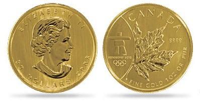 The Vancouver 2010 Winter Olympic Games Gold Maple series (running from 2008 to 2010, the year in which Vancouver hosted the Winter Olympics) is issued by the Royal Canadian Mint. Struck in .9999 fine gold, these are the world's first bullion coins to pay homage to the spirit of the Olympic Games. The coin's content and purity are guaranteed by the Government of Canada.