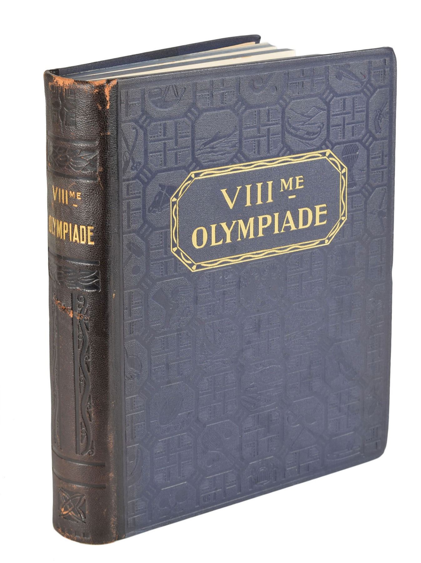 Les Jeux de la VIII Olympiade, Paris 1924, leatherbound hardcover in French, 10 x 12.75, 852 pages, published by the French Olympic Committee.