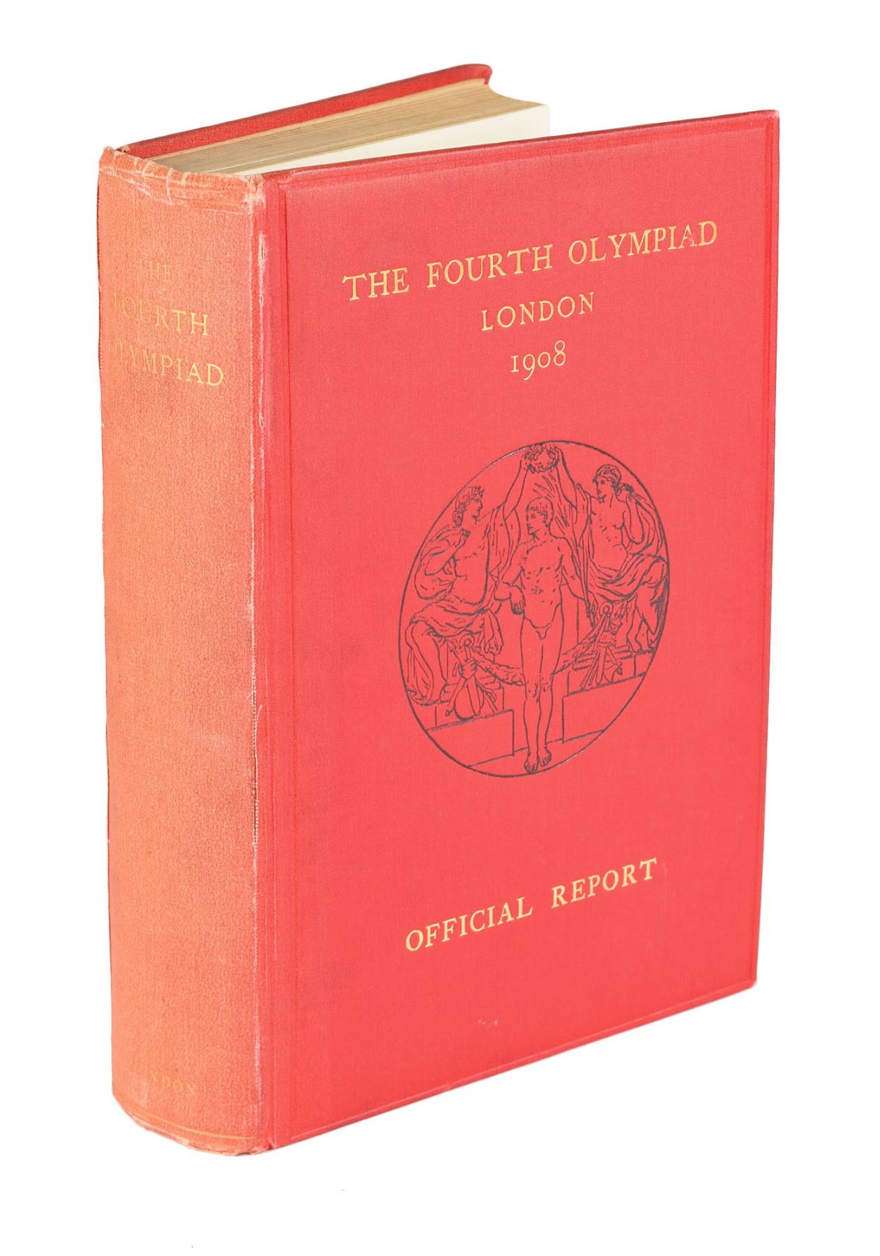 The Fourth Olympiad: Being the Official Report of The Olympic Games of 1908, celebrated in London, under the patronage of His Most Gracious Majesty King Edward VII and by the sanction of The International Olympic Committee, hardcover in English, 7 x 10, 794 pages, published by The British Olympic Association in 1909.