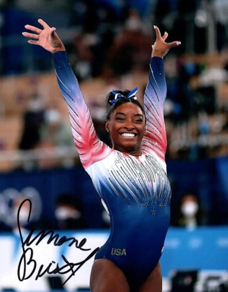 Olympic gymnast Simone Biles facsimile signed photo. 8x10 inches. This item is a reprint of an original autograph